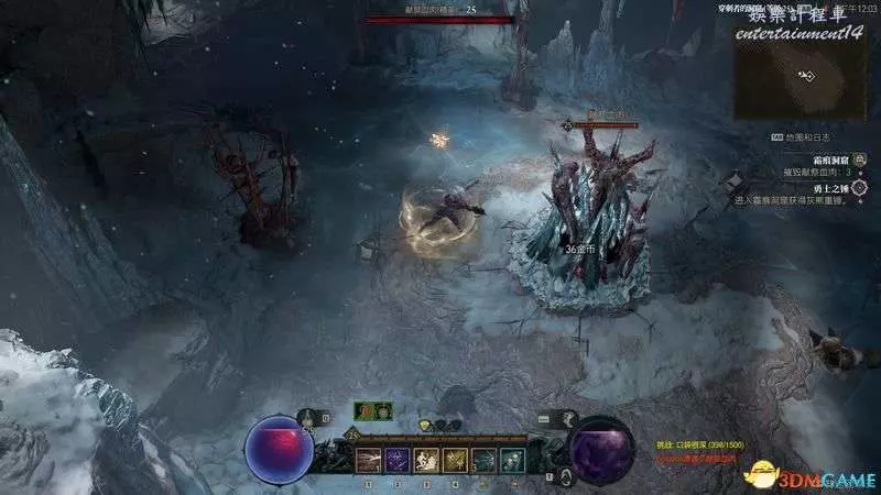 任務在霜痕洞窟,這裡也會掉落破碎的供品任務需要的骨頭。