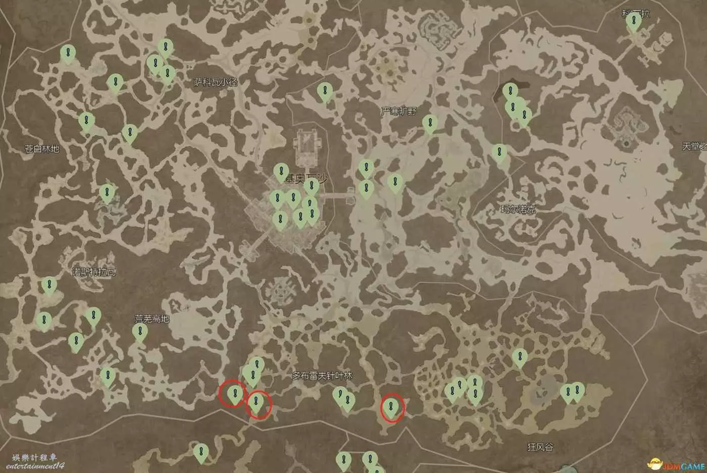 商人帳本除了之前支線提到的位置,圖中基奧瓦沙東南山洞中也可能出。