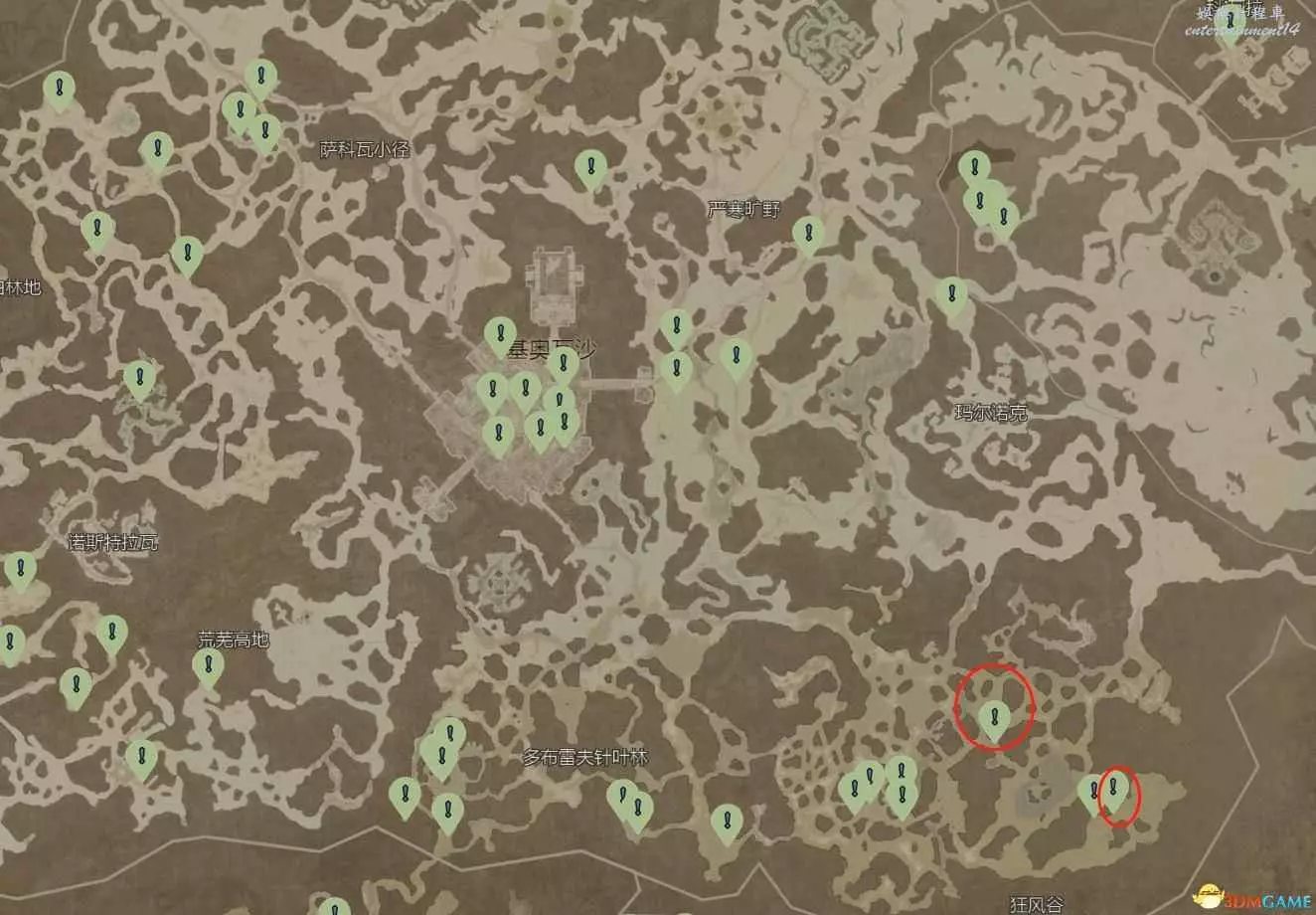 圖中位置,基奧瓦沙北部,地城入口附近。
