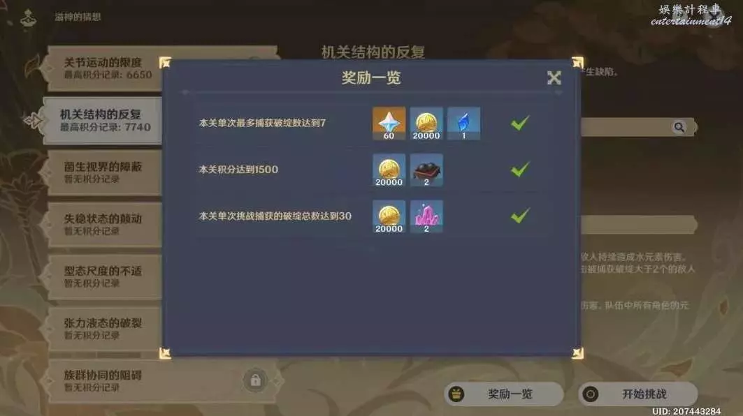 獎勵一覽(獎勵要求)