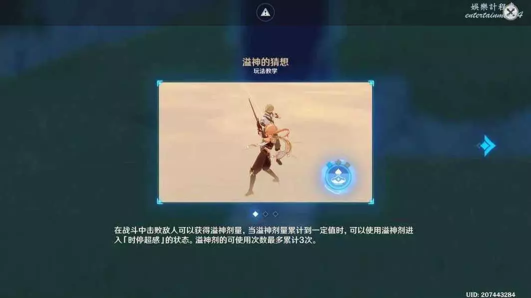 ▶當溢神劑量累計到一定值時,可進入「時停超感」的狀態;