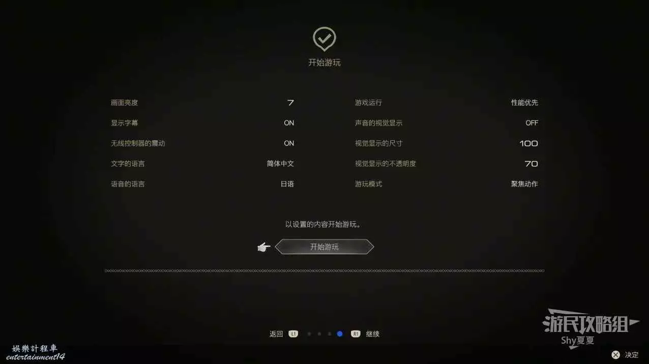 遊戲設置:無線控制器的震動,【打開】可以大大增加體驗;鎖定操作,使用【按L1開啟/關閉】可以讓你的戰鬥操作舒服一些。