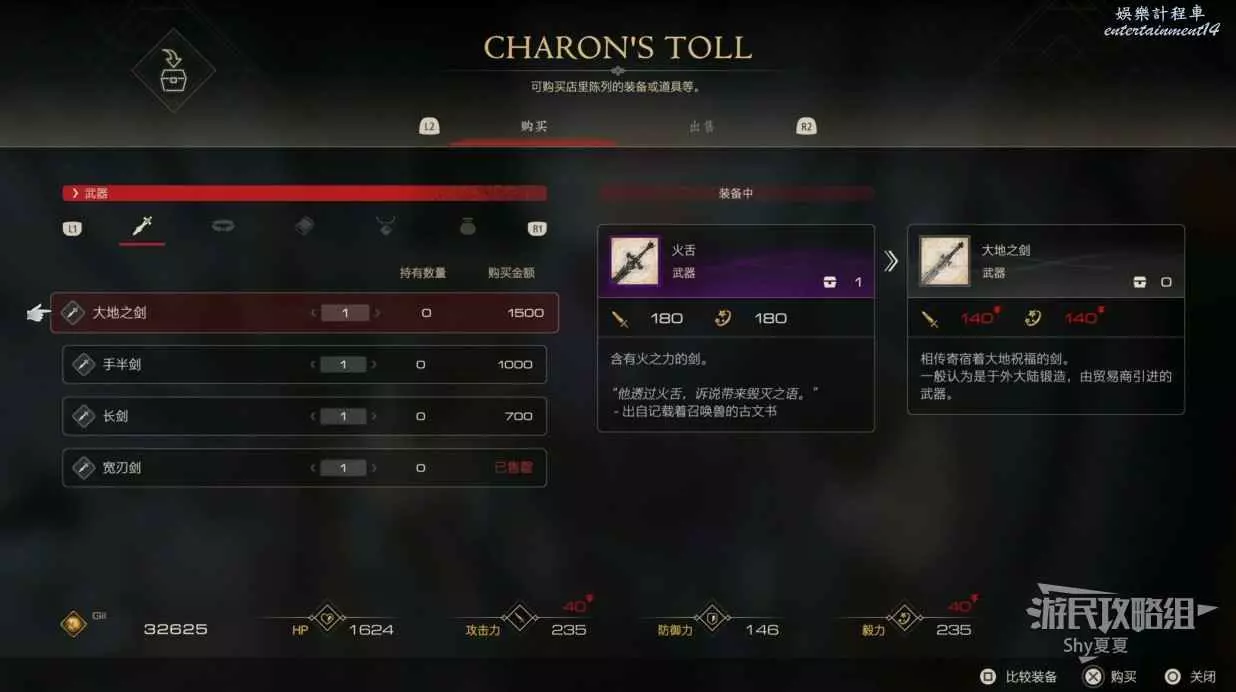 武器主要提供攻擊力和毅力。