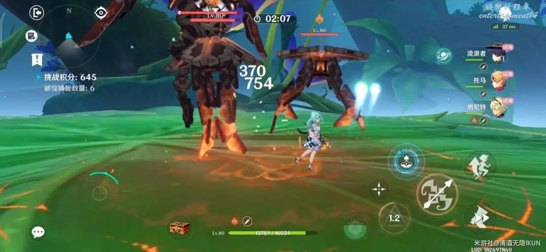輸出手法:托馬Q-E切班尼特Q切琺露珊Q-E切散兵E-AAA等體力快沒了Q然後繼續進行上述上半場的迴圈。