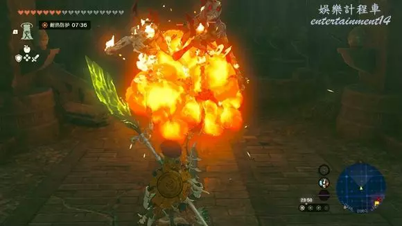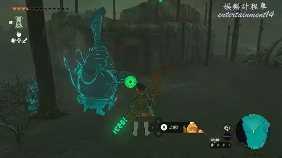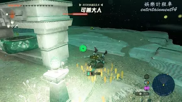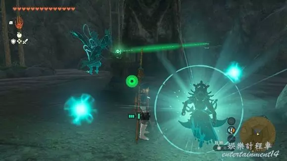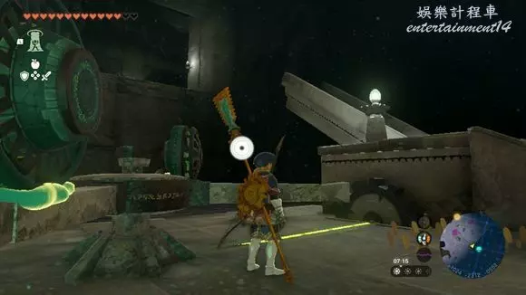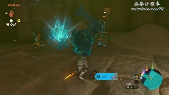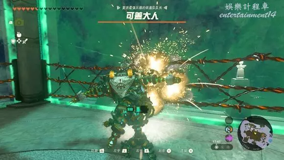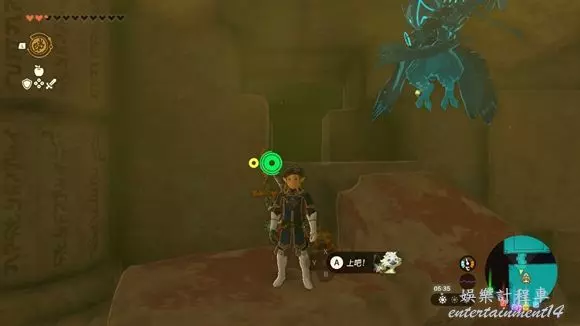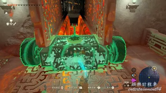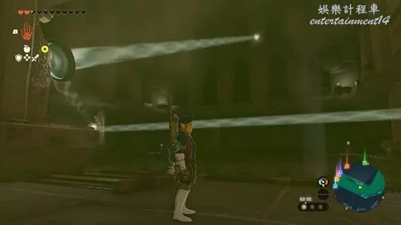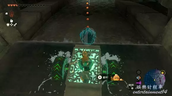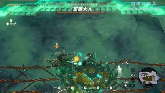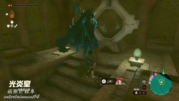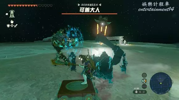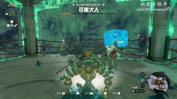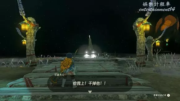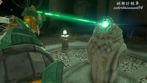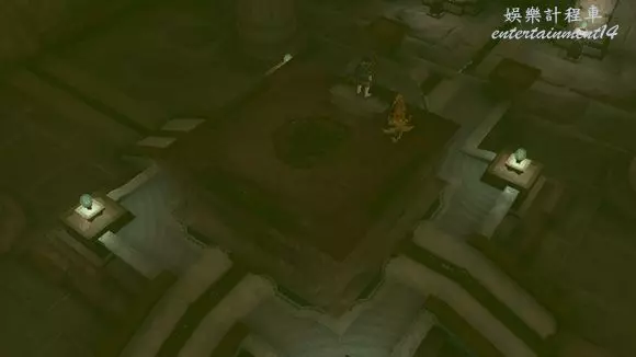 在這裡會看到可蓋大人在啟動機關,但是啟動不成功,於是乎又是一場戰鬥開始,利用彈簧飛上去,觸發林克時間,射擊可蓋大人下來攻擊就可以了,2個回合就搞定了。