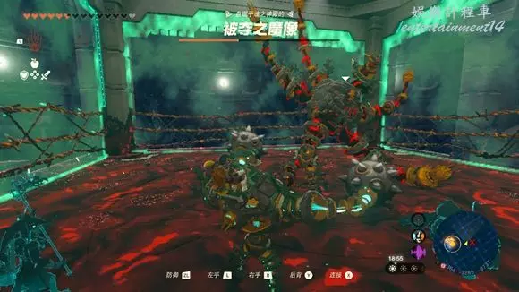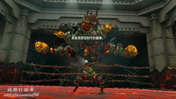 直接到海布拉廢礦了,這一次的戰鬥是魔像對決,需要操作魔像之間來戰鬥,同時也透露了加儂多夫藏在海拉魯城堡地底最深處。