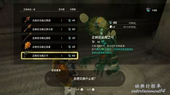 對話露珠,用弓箭射擊巢穴,不然吉波得怪物一直出現,下面右邊第二個石像是空的,進去裡面能撿到+50左納尼烏姆之堅盾.