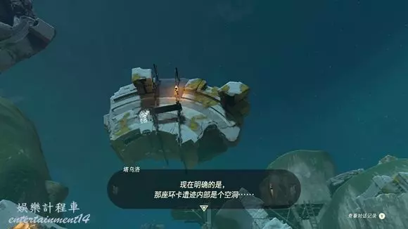 然後前往卡茲溜湖,直接飛過去就得了,然後在那一堆篝火那裡會看到了塔烏洛的備忘錄,說柱子的底部出現了一條前往深處的道路,我們進入洞窟吧。