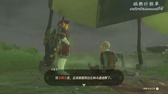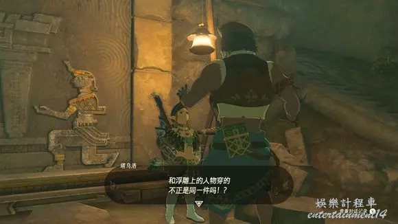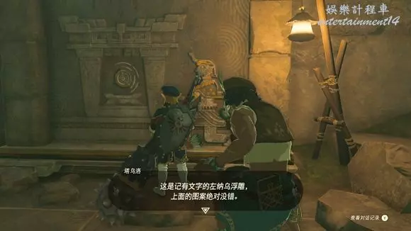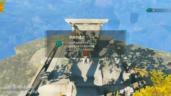 然後對著碑文拍照,下來給塔烏洛看照片,塔烏洛解讀出來了其中一些文字,一個叫米涅魯的人物與塞爾達有個約定,而藏有鑰匙的地方就在東南方,後面就不清楚了。但帕雅解讀出來就是龍之地,最後線索指向費羅尼的左納烏遺跡群,然後前往泡泡拉高地上的鳥望台吧。