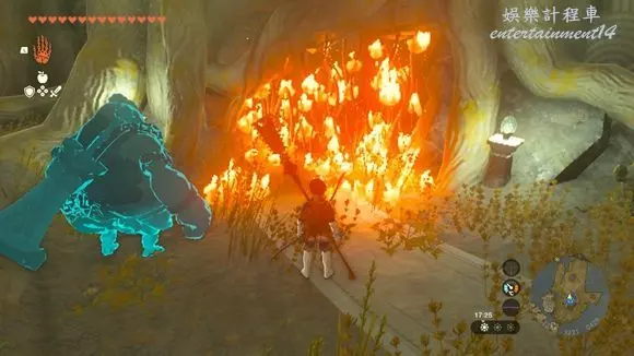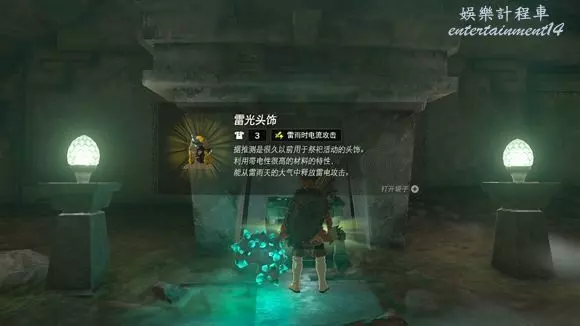 然後從這個房間出門右轉,還是一直沿著盡頭走,會看到一個發光的房間,座標為(0973 -2811 0007)燒掉藤蔓進入打開寶箱就能獲得雷光頭飾了。