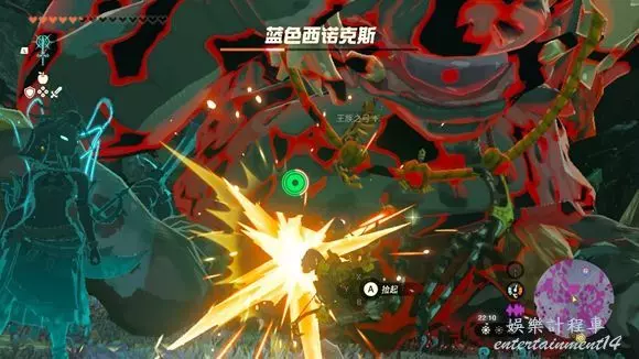 見到塞爾達後,又出現了怪物大軍,消滅之後,上去二樓,又要消滅一波怪物大軍,之後前往B1,打法很簡單,從上面跳下來,利用林克時間射擊西諾貝斯的眼睛即可。