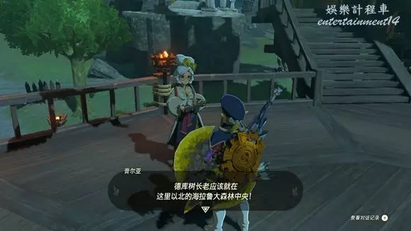 回去監視堡壘跟普爾亞對話,告訴她已經找到了第五位賢者了,然後得知德庫樹長老的所在地,應該就在於以北的海拉魯大森林中央。