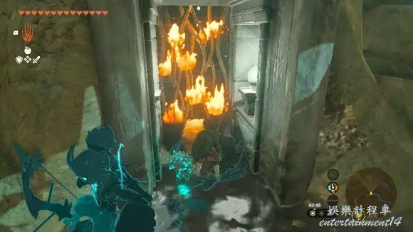 過了2道火焰,踩下機關,火焰就滅了,門也打開了。