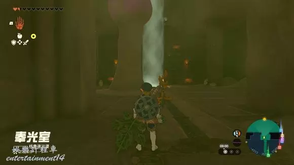 右邊牆壁有個破洞,掉下去機關有格魯德之槍,之後撿起鏡子返回。這下子有2個鏡子了,利用究極手操作鏡子的反光對照大門上門的機關,就打開了。