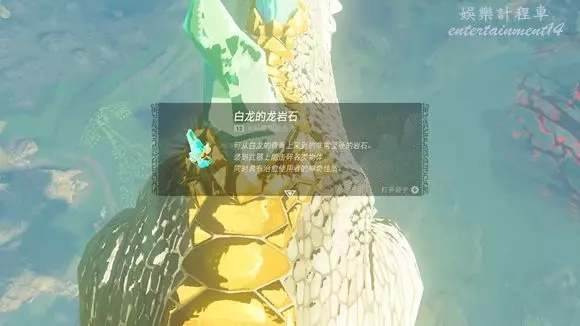 我們可以觀察一下白龍的飛行軌跡,等待合適的時機,直接從任何一座鳥望臺上去,飛到白龍身上,白龍身上還可以獲得【白龍的龍岩石】以及擊打白龍身上會掉落【白龍的鱗片】。