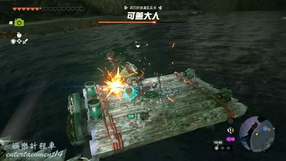 然後會進行一場水戰,打法很簡單,只需要用阿沅攻擊,然後可蓋會暈厥,跳上他的船隻直接砍就可以了。