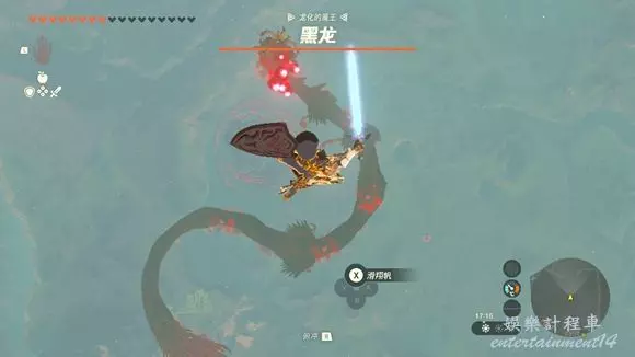 黑龍打法很簡單,身上有4顆眼珠子,而白龍會盤旋在黑龍頂部,然後林克跳下去到黑龍身上攻擊眼珠子,迴圈4次,之後黑龍頭部出現秘石,上去最後一擊就可以了。