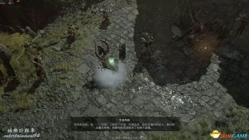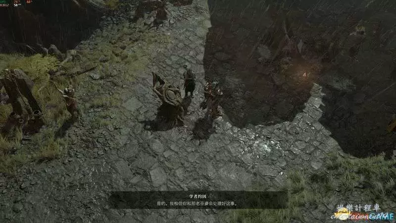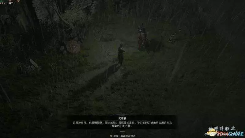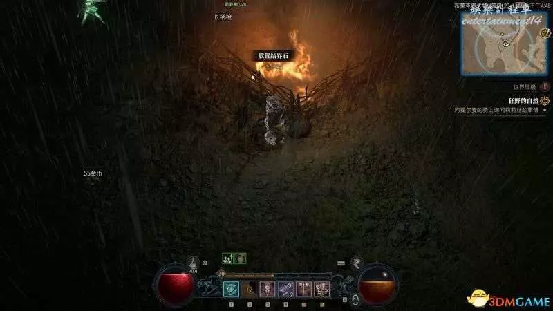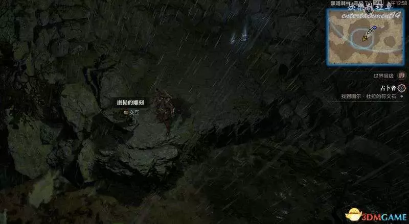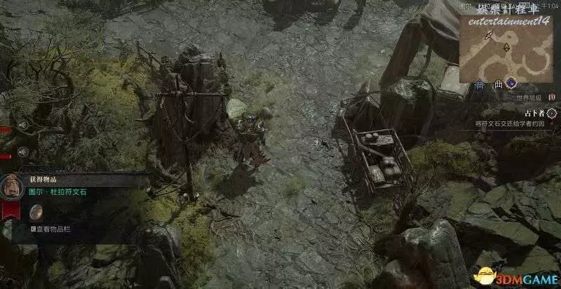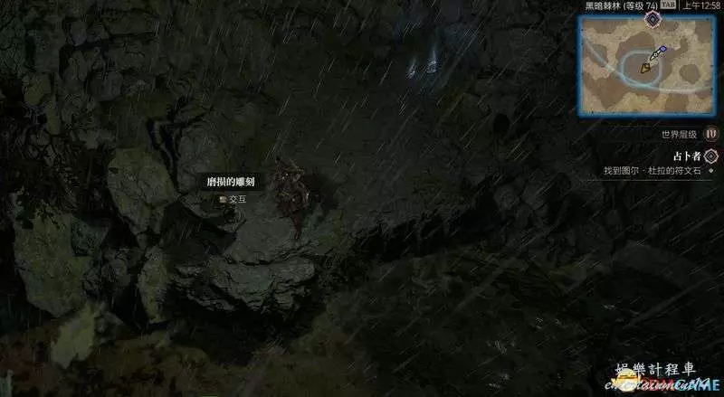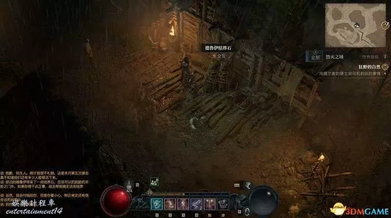 首先在房屋旁和德魯伊結界石互動,取得石頭。