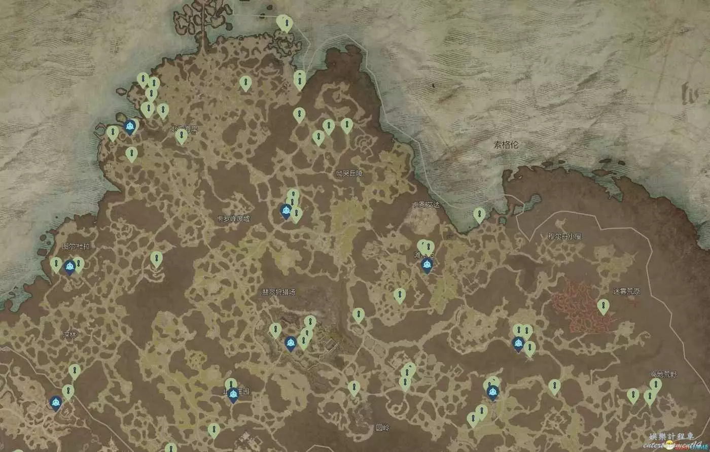 注意不止圖中一個標註的觸發點,整個慟哭山丘都可能遇到。