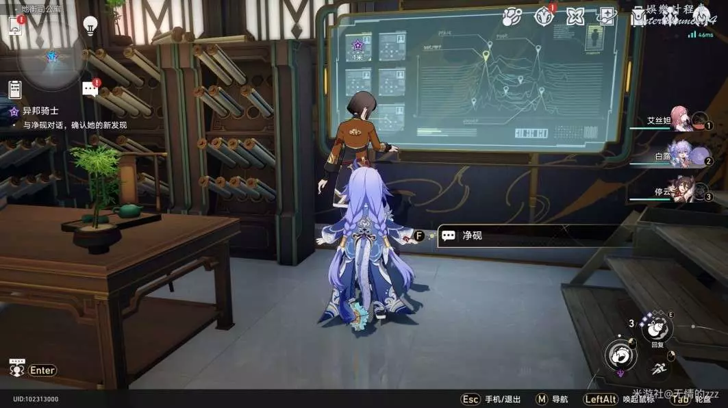 4.隨後,我們在過完一段劇情對話以後,找到NPC淨硯,進行線索排查
