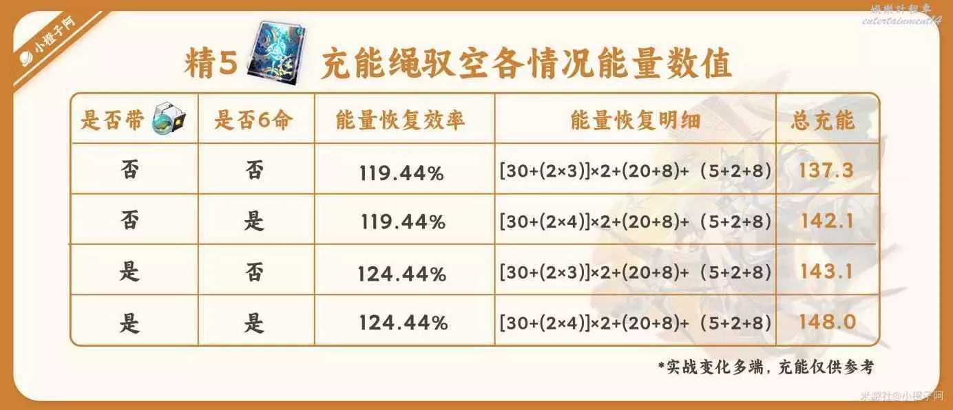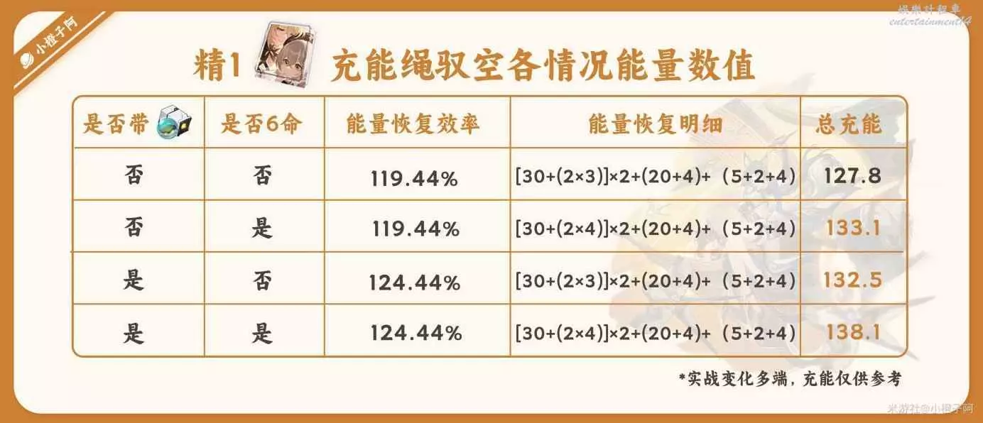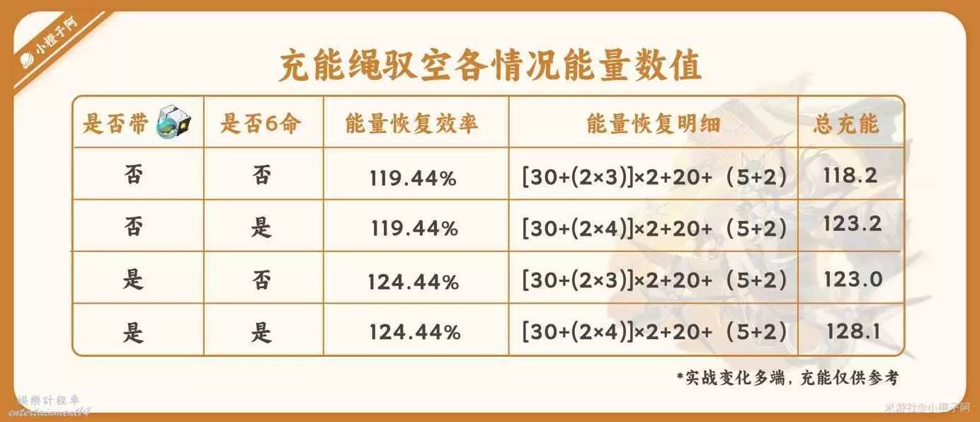 ③ 馭空的充能效率還是很高的,雖然130能量需求,但是馭空行跡【氣壯】、2命以及6命都給予了馭空快速回能的條件,小柳丁這計算都是最基本的回能情況,戰鬥還有很多變化會使馭空回能更加迅速。