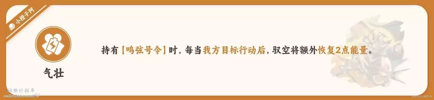 ③ 小可愛們,角色釋放終結技時,一定要在持有【鳴弦號令】時釋放,這樣馭空就能吃到行跡【氣壯】所帶來的回能。