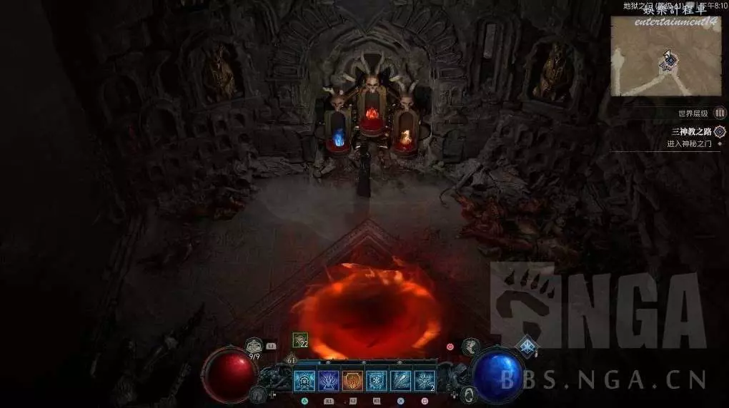 1.來到凱基斯坦帝國圖書館傳送點,地圖右側有個小道通往地獄之門,途中會遇到一個三神教祭壇,觸發旁邊騎士屍體會掉落錄音,需要我們破解祭壇密文。查看祭壇中間三個按鈕可以看到提示