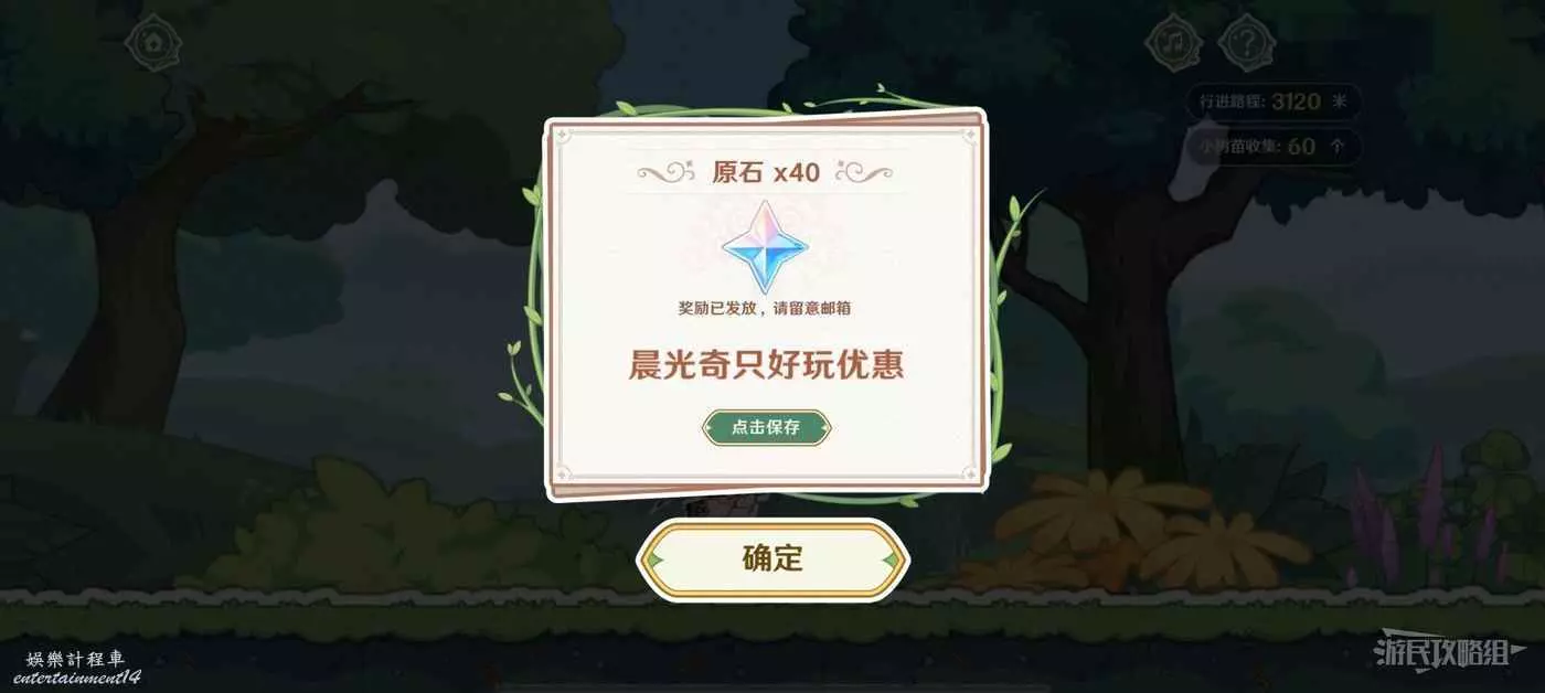 原石會自動發放至帳號郵箱中,同時還可以領取聯動優惠券(點擊【點擊保存】可以查看優惠券領取方法)。