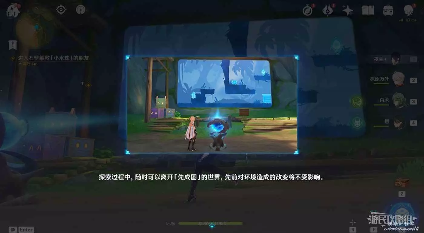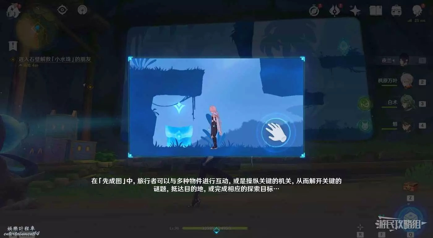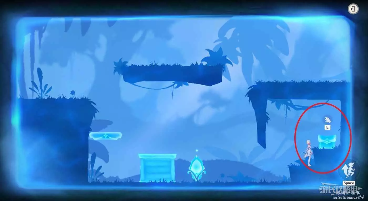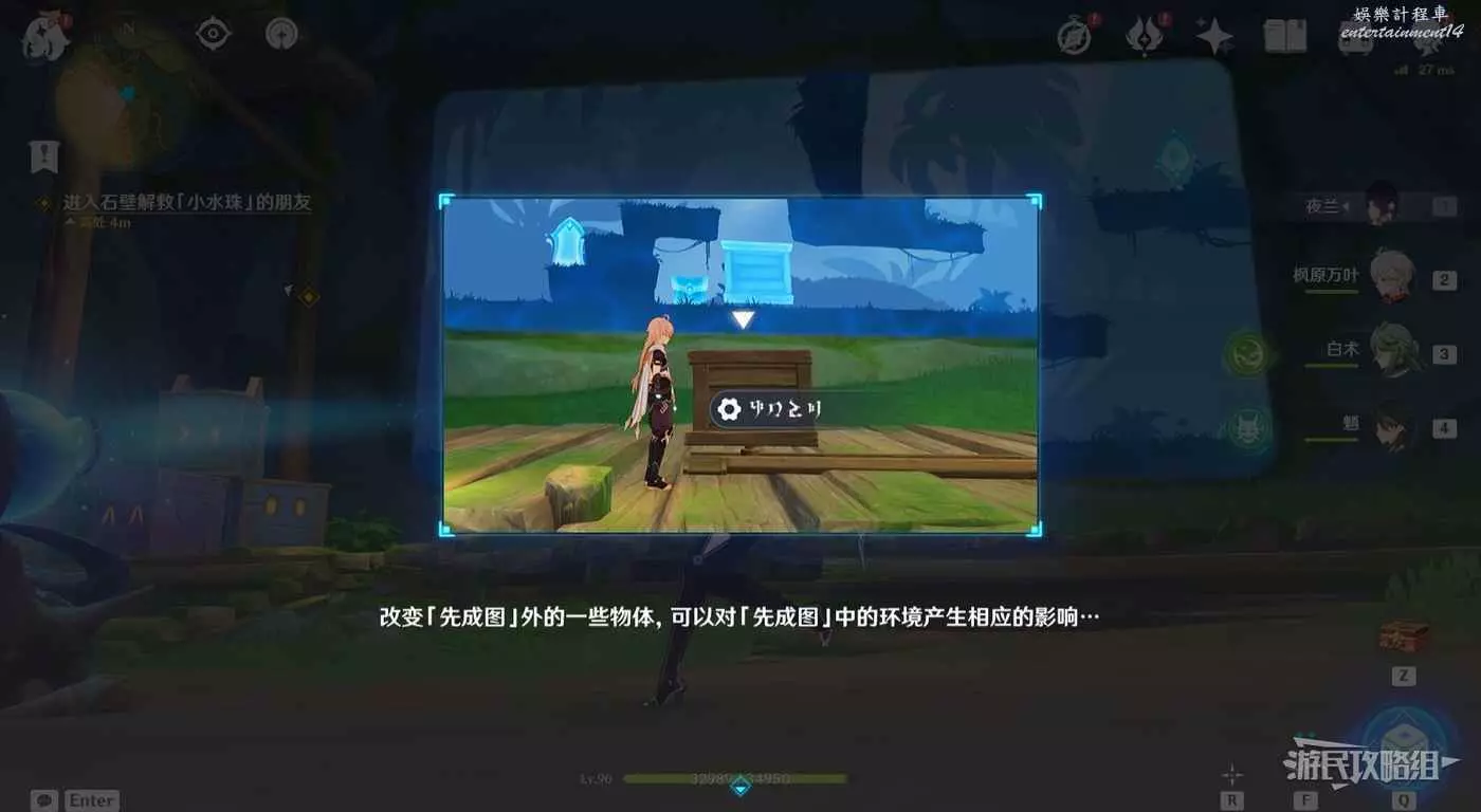 劇情結束後,先分別與聚流映燈推開旁邊的兩個木箱子,再與聚流映燈互動進入先成圖。