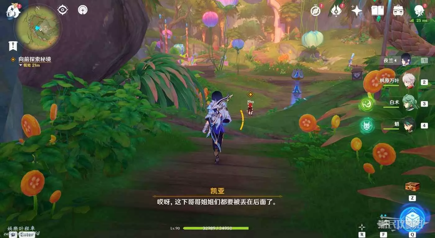 到達目標位置後,觸發對話。對話完畢後跟隨小水珠前進。