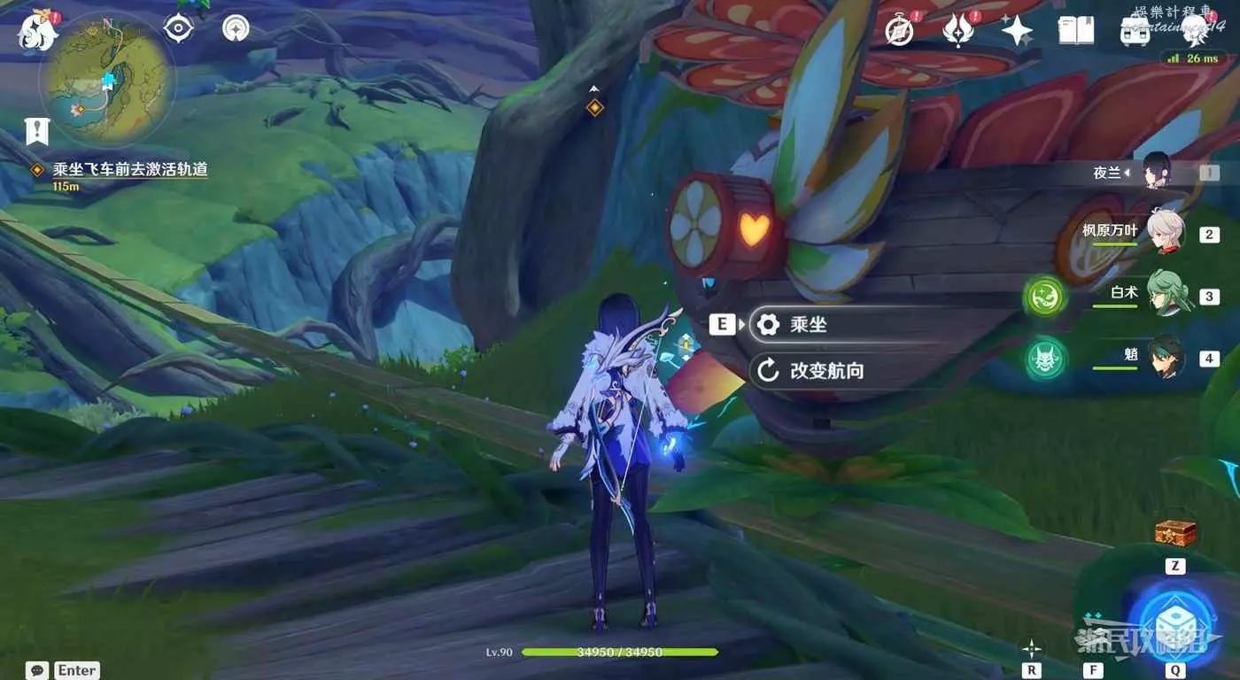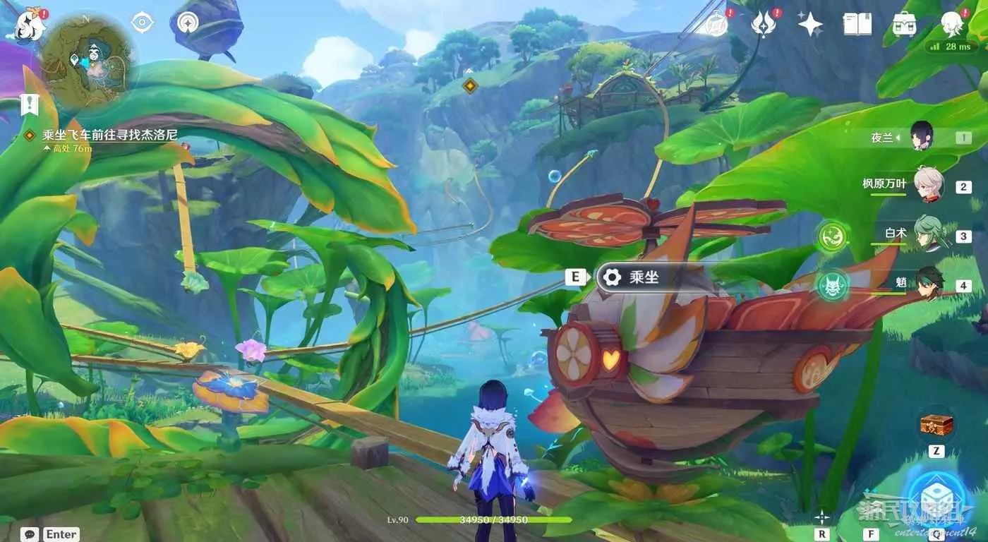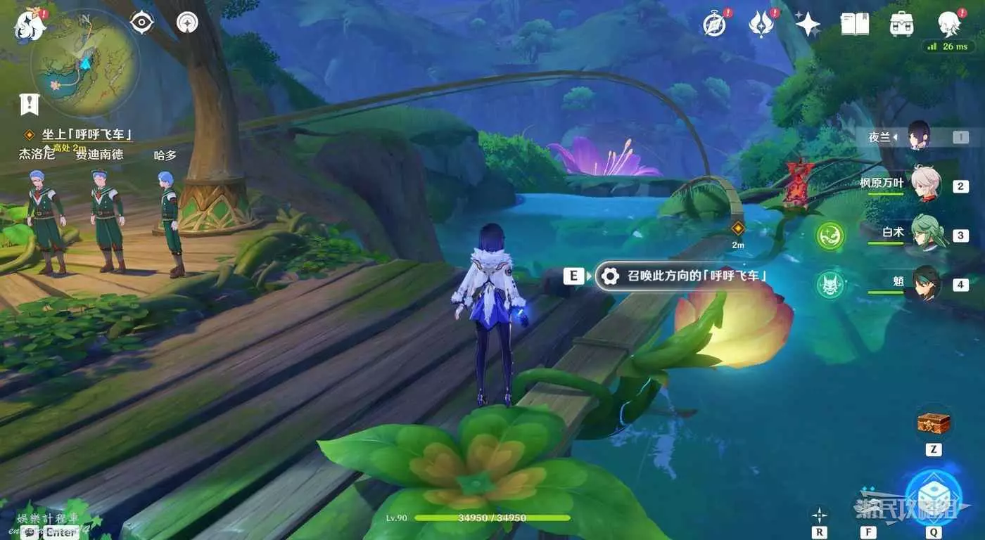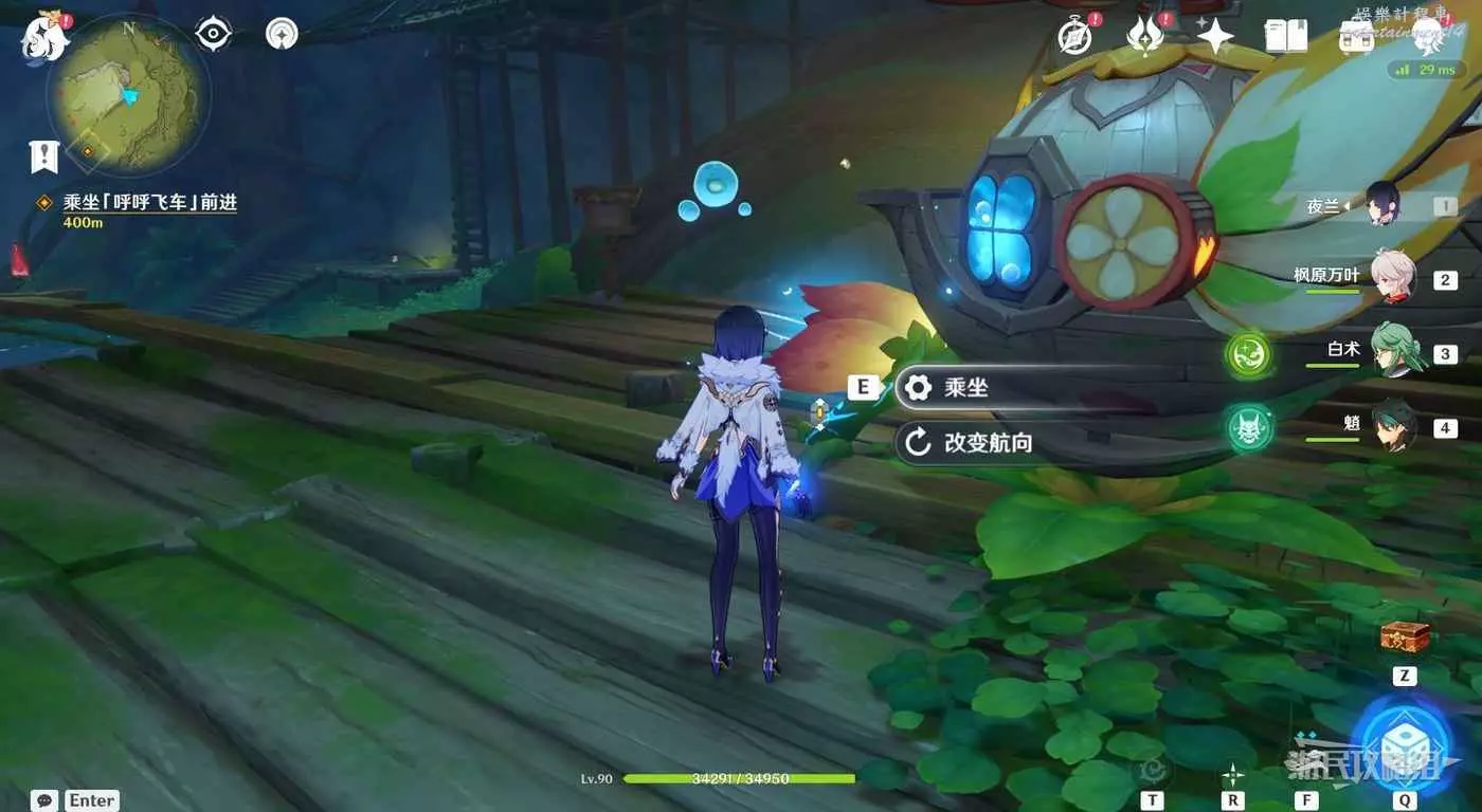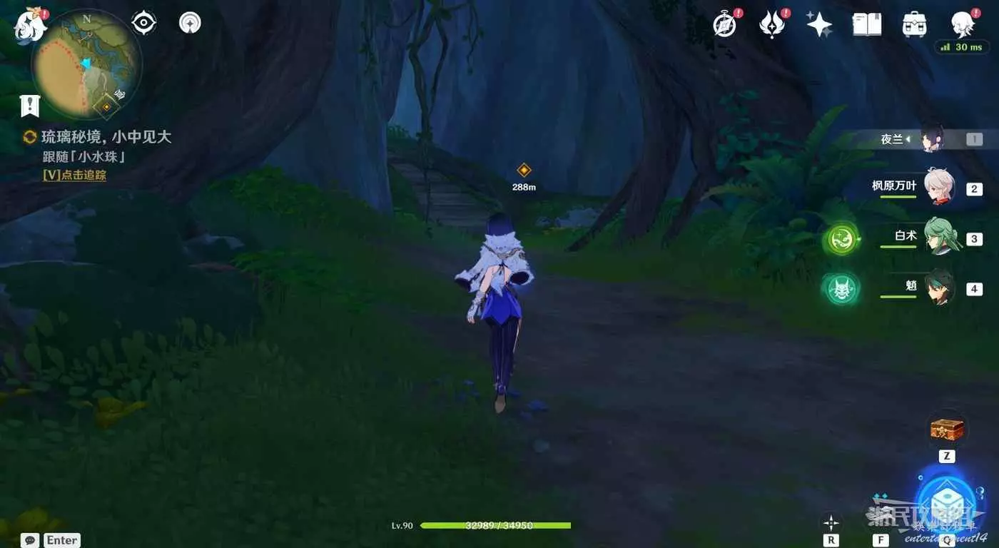 一路跟隨任務指引前進,需要走很長的路,路上有四葉印可以使用。順便開啟路上的傳送錨點。