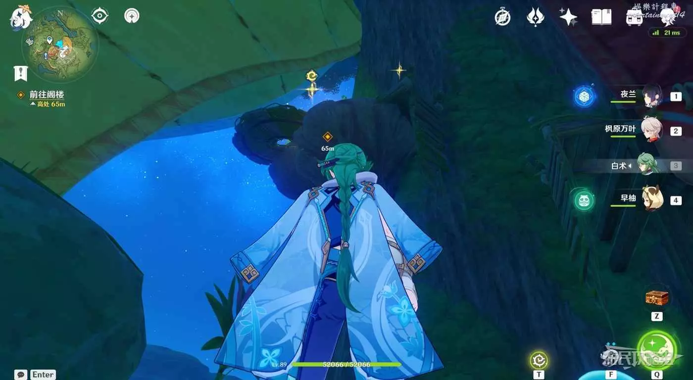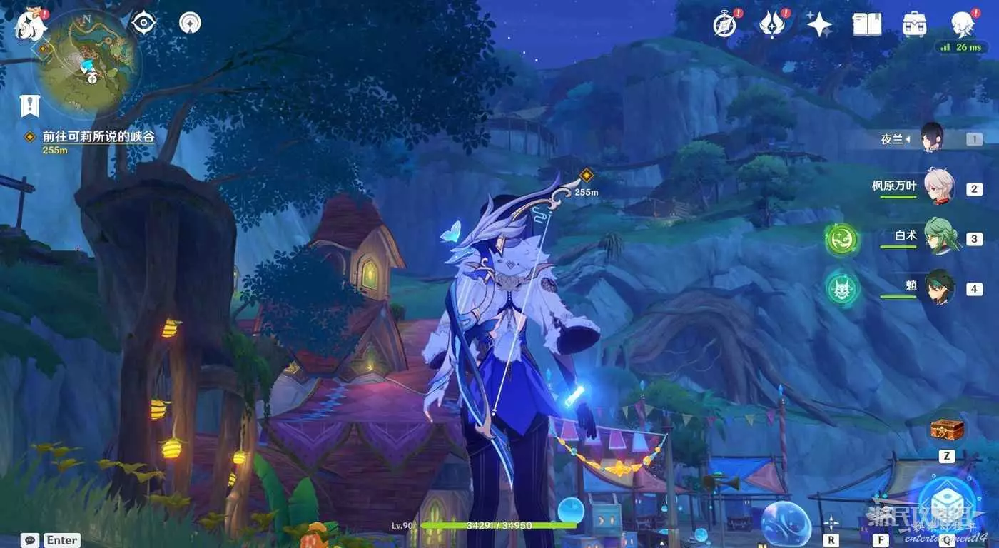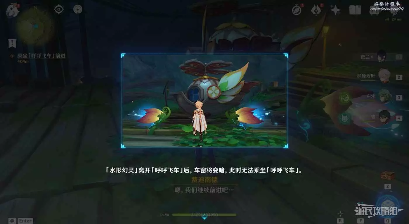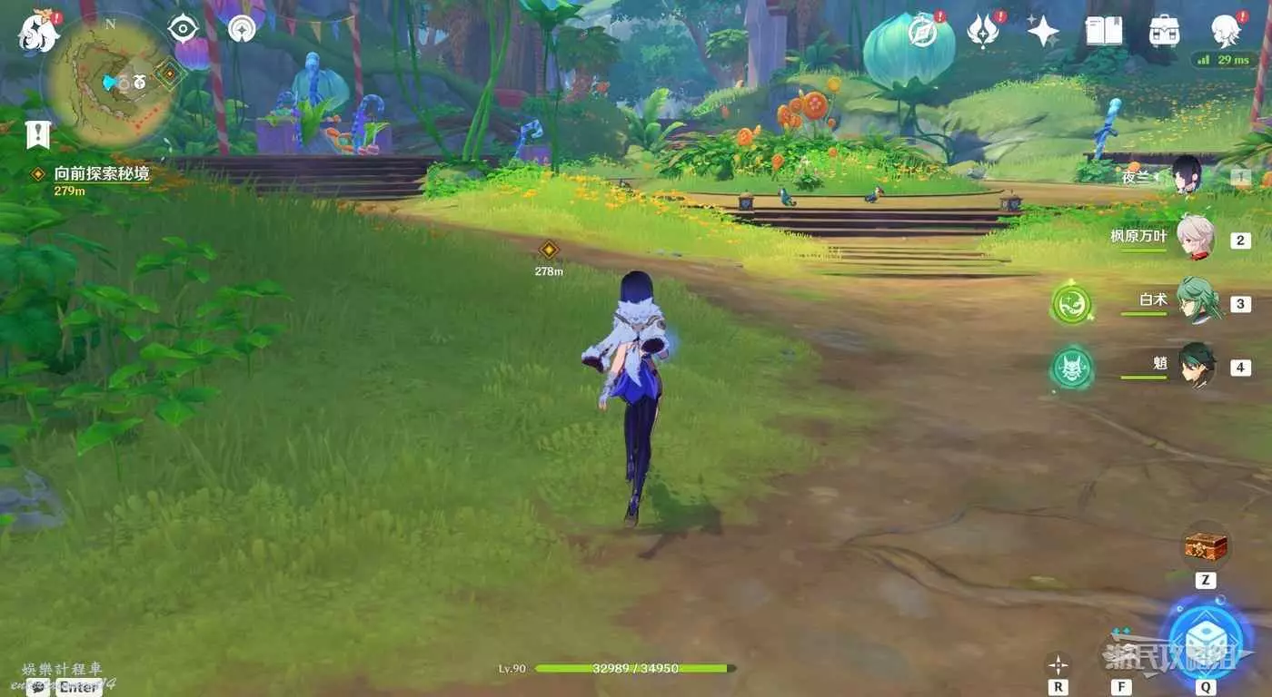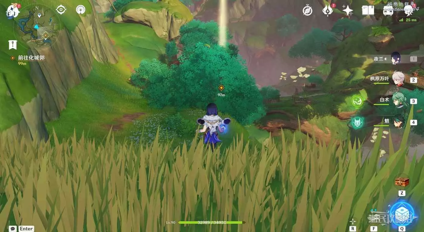 一路跟隨任務指引前進,需要走很長的路,路上有四葉印可以使用。順便開啟路上的傳送錨點。