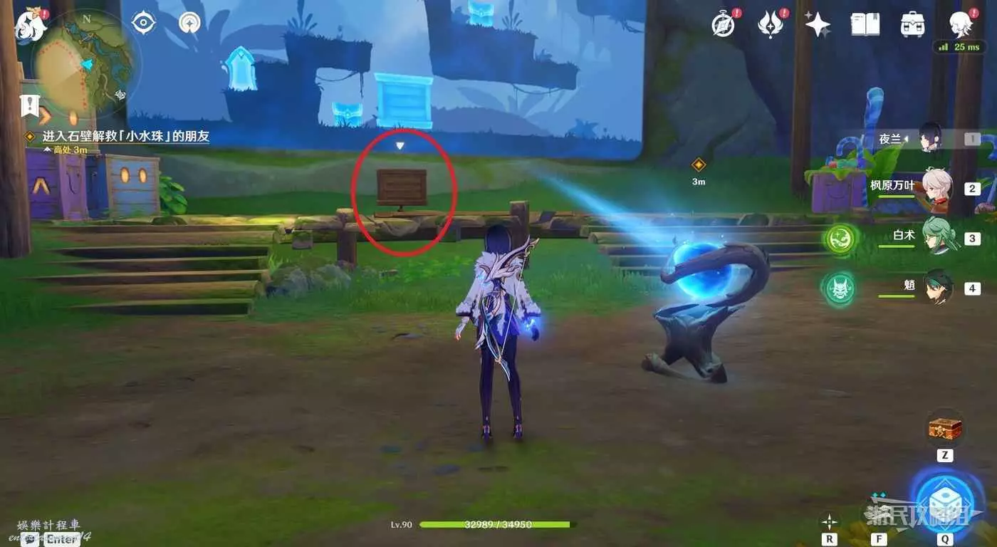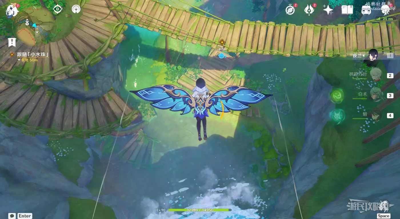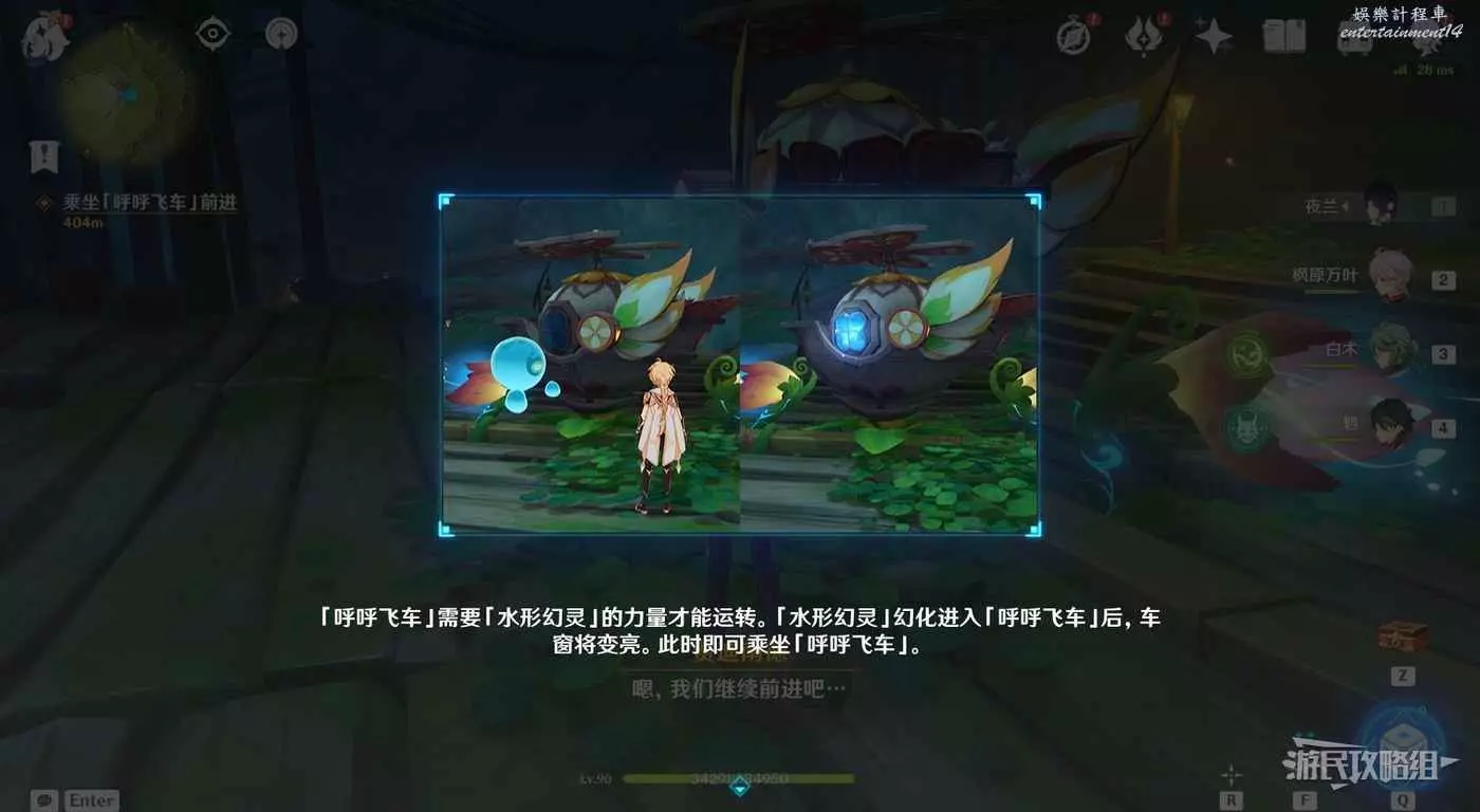 一路跟隨小水珠,自動觸發對話,對話完畢靠近聚流映燈,觸發教學。