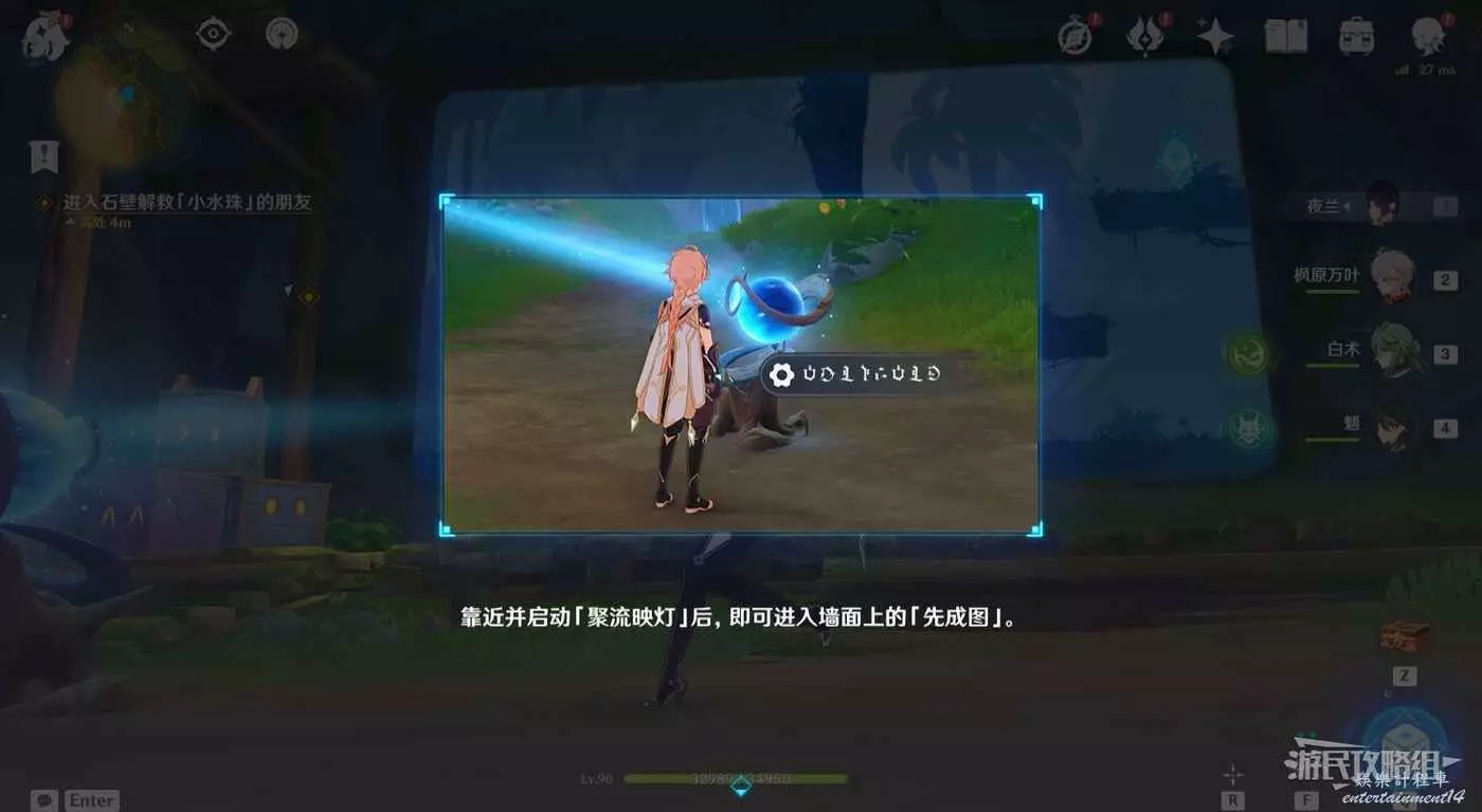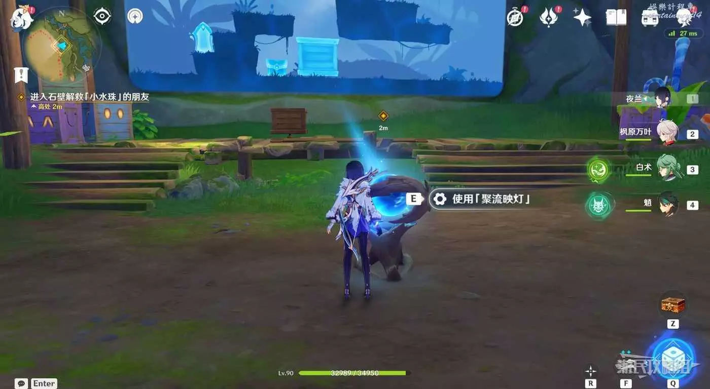 正確操作後,觸發劇情,解救1只小水珠,靠近後使用聚流映燈。