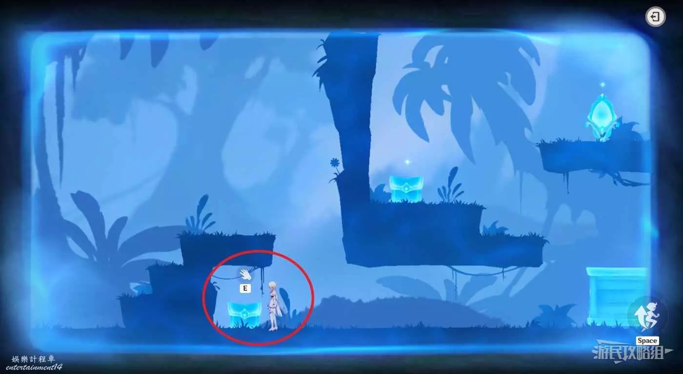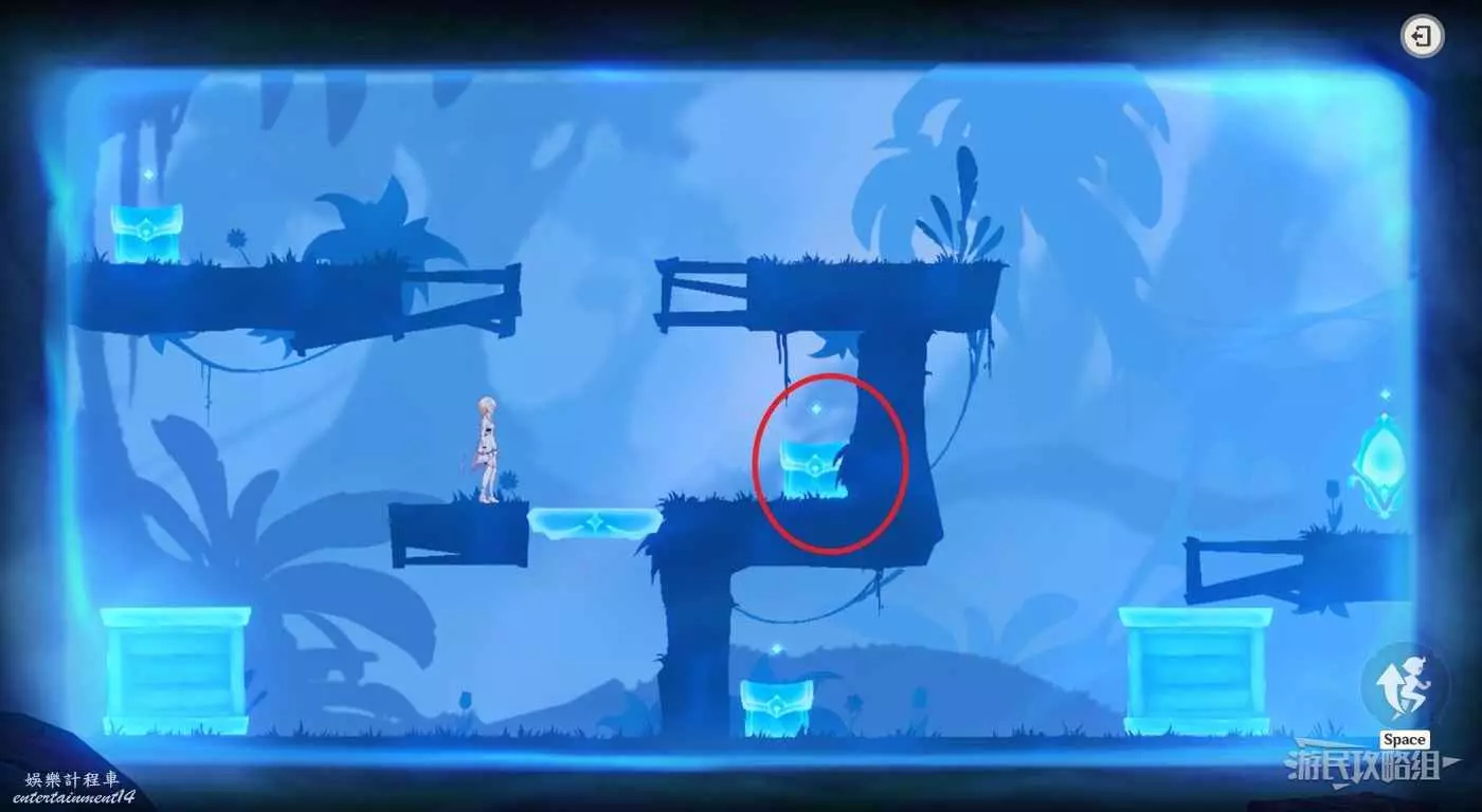 往下跳,到右側開啟第三個寶箱。然後與出口互動離開先成圖。