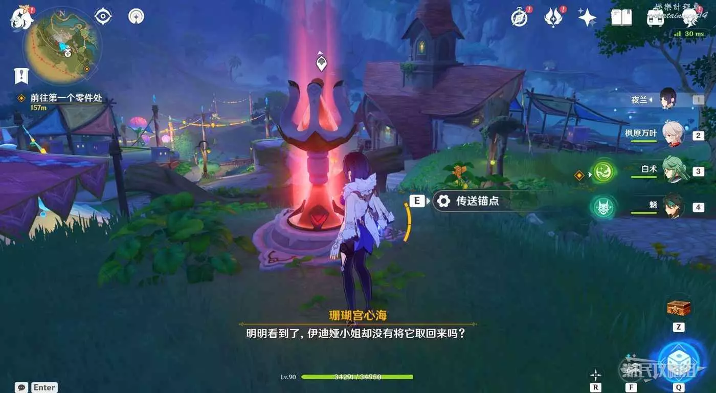 交談完畢自動觸發劇情。劇情結束後需要跟隨指引尋找零件,順路開啟附近的傳送錨點。