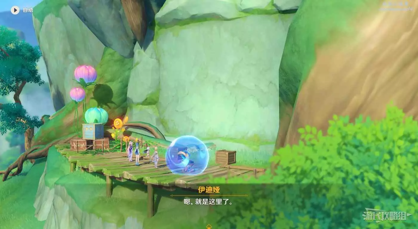 對話結束會自動傳送到須彌沙漠區域,自動觸發劇情,跟隨劇情,進入瓶子島。