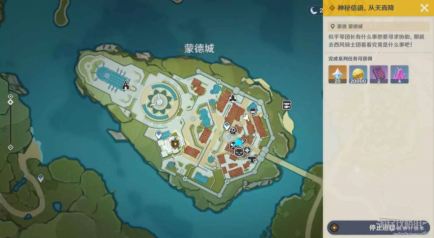 活動開啟後,跟隨任務指引蒙德西風騎士團。如果任務沒有自動追蹤的話,可以打開任務介面手動追蹤。