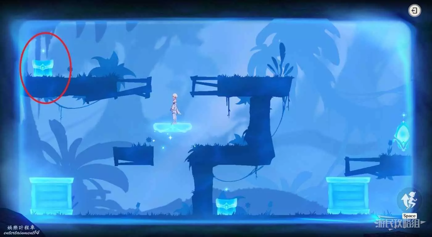 然後乘坐小台子到達上層,開啟第二個寶箱。