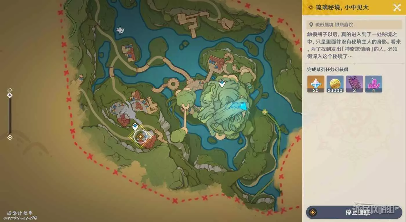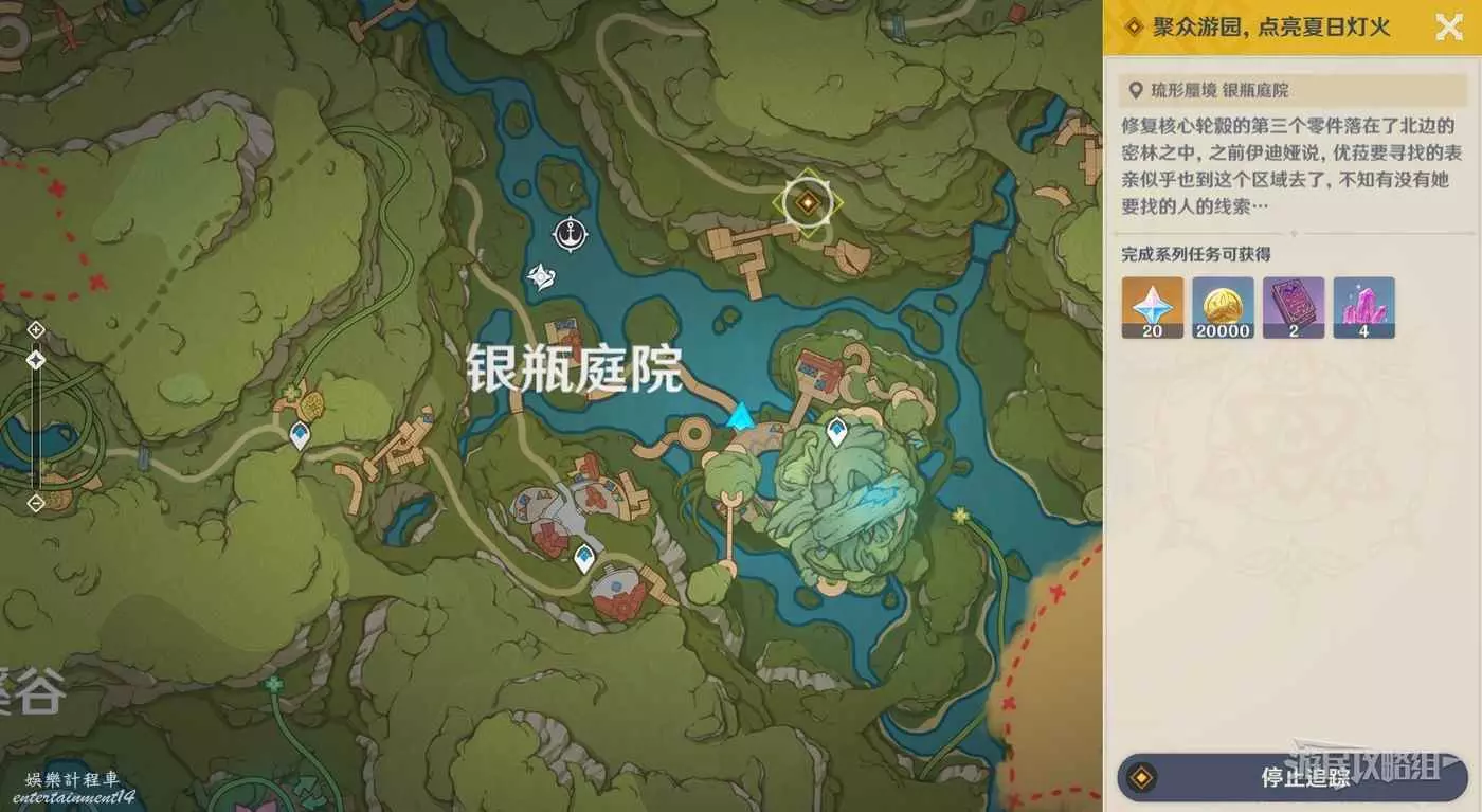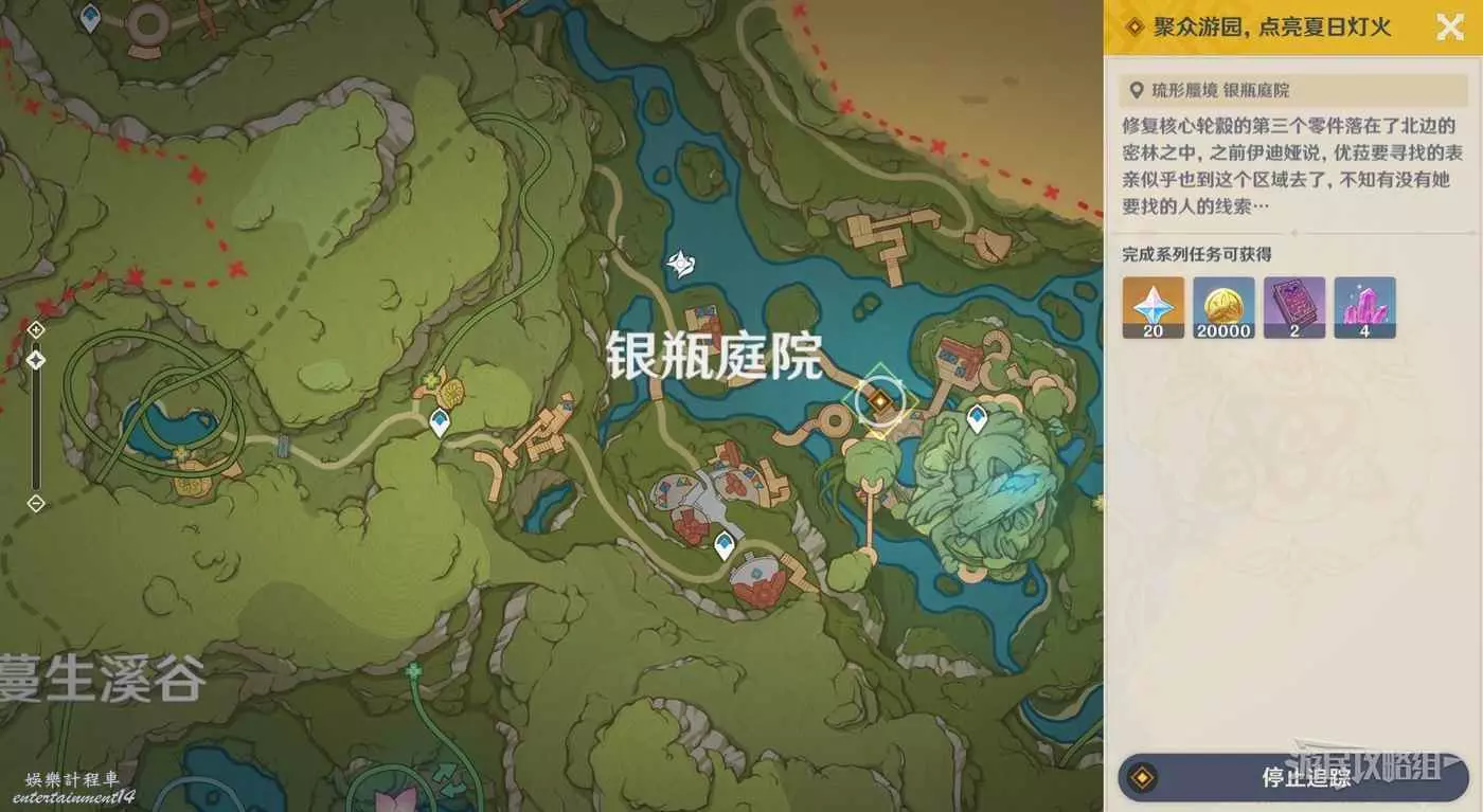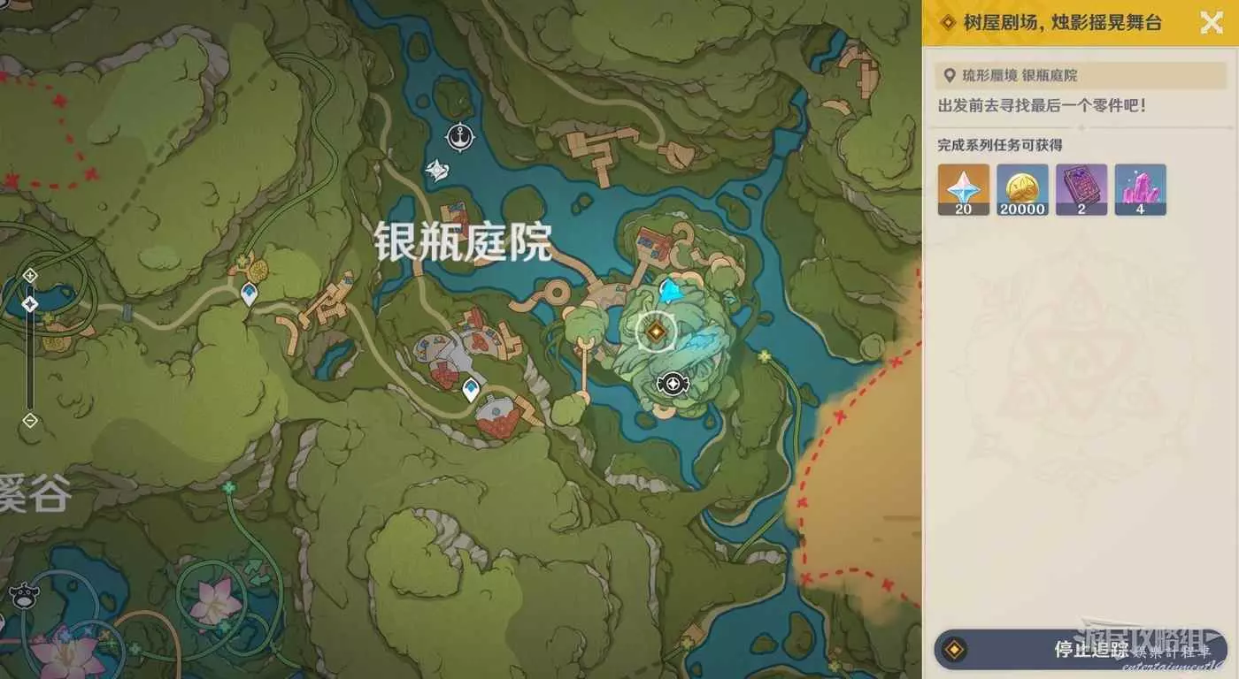 離開先成圖後會自動觸發對話,對話完畢需要返回銀瓶庭院,可以使用之前啟動的傳送錨點直接傳送。返回銀瓶庭院後自動觸發對話,對話結束任務完成。