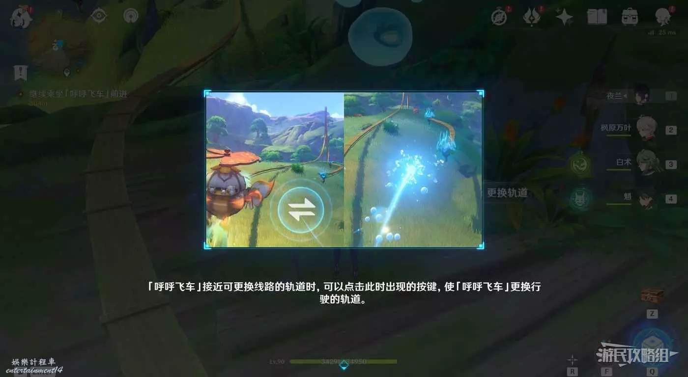 開啟寶箱後可以看到旁邊有關於更換軌道的說明,然後繼續乘坐纜車。