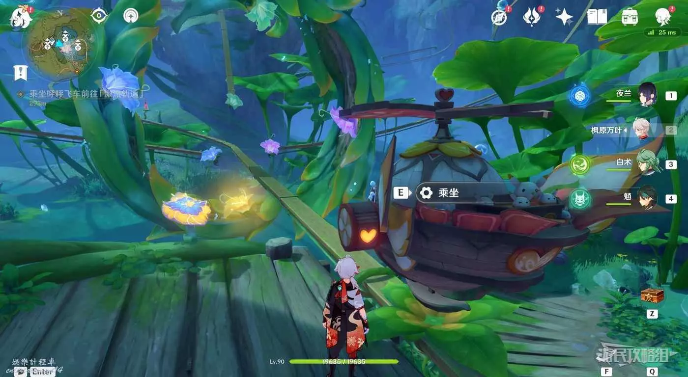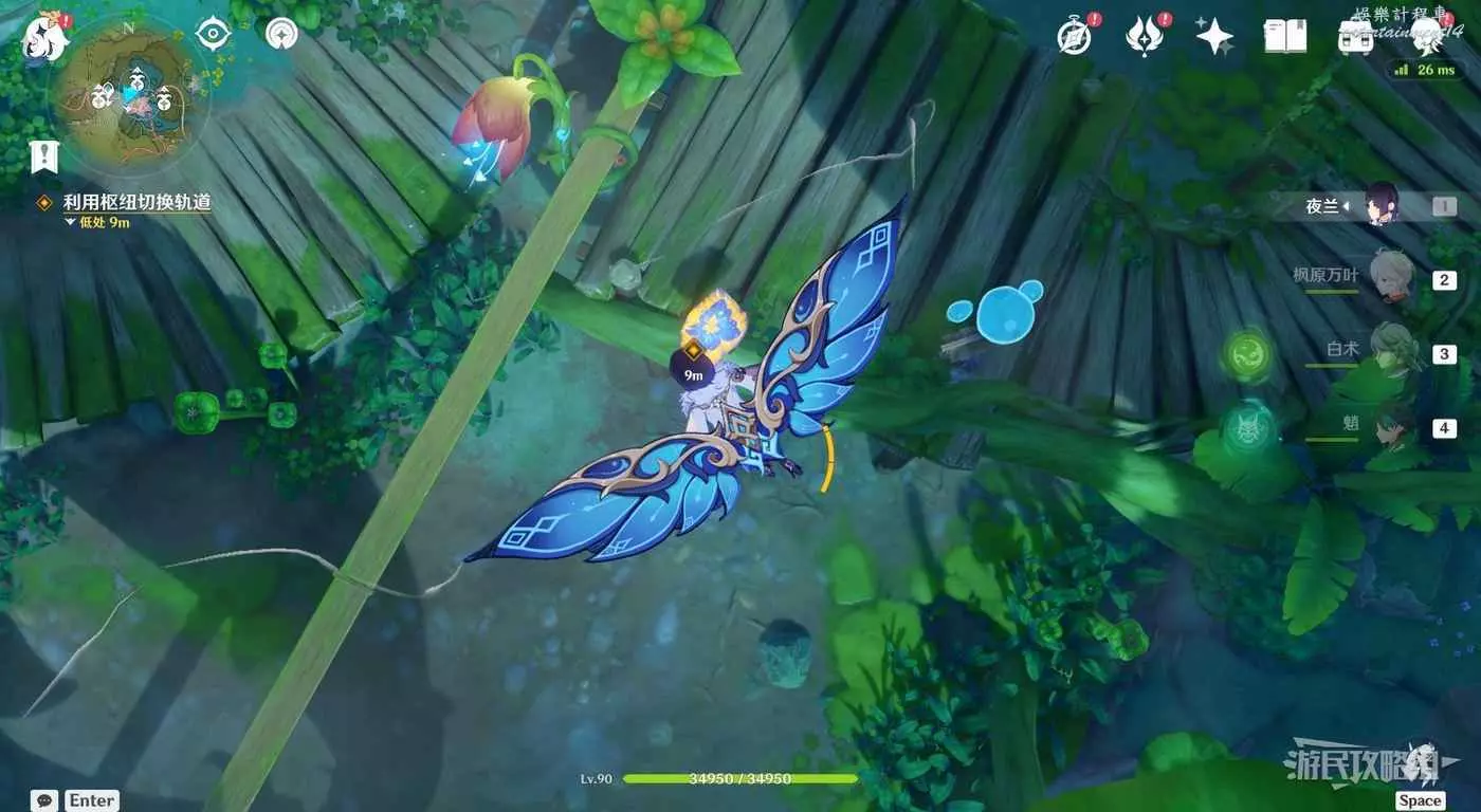 等待平臺轉動過來,使用風之翼落在平臺上,然後等待平臺移動到最高處。注意平臺移動的軌跡附近有歡興禮券,不想再來一次的話可以此時拾取。