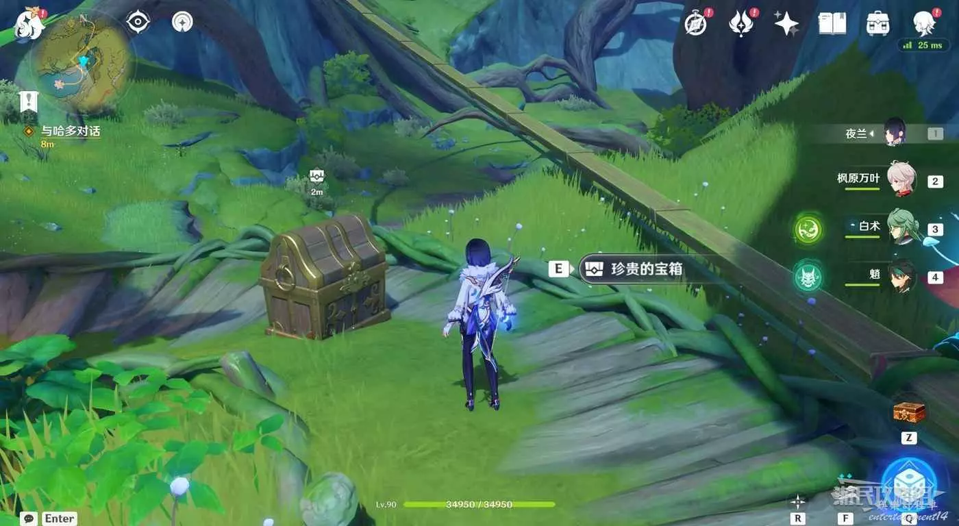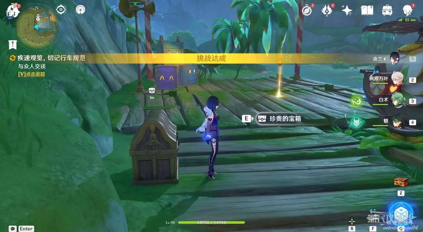 完成挑戰並跳下纜車,開啟寶箱,前往目標位置。