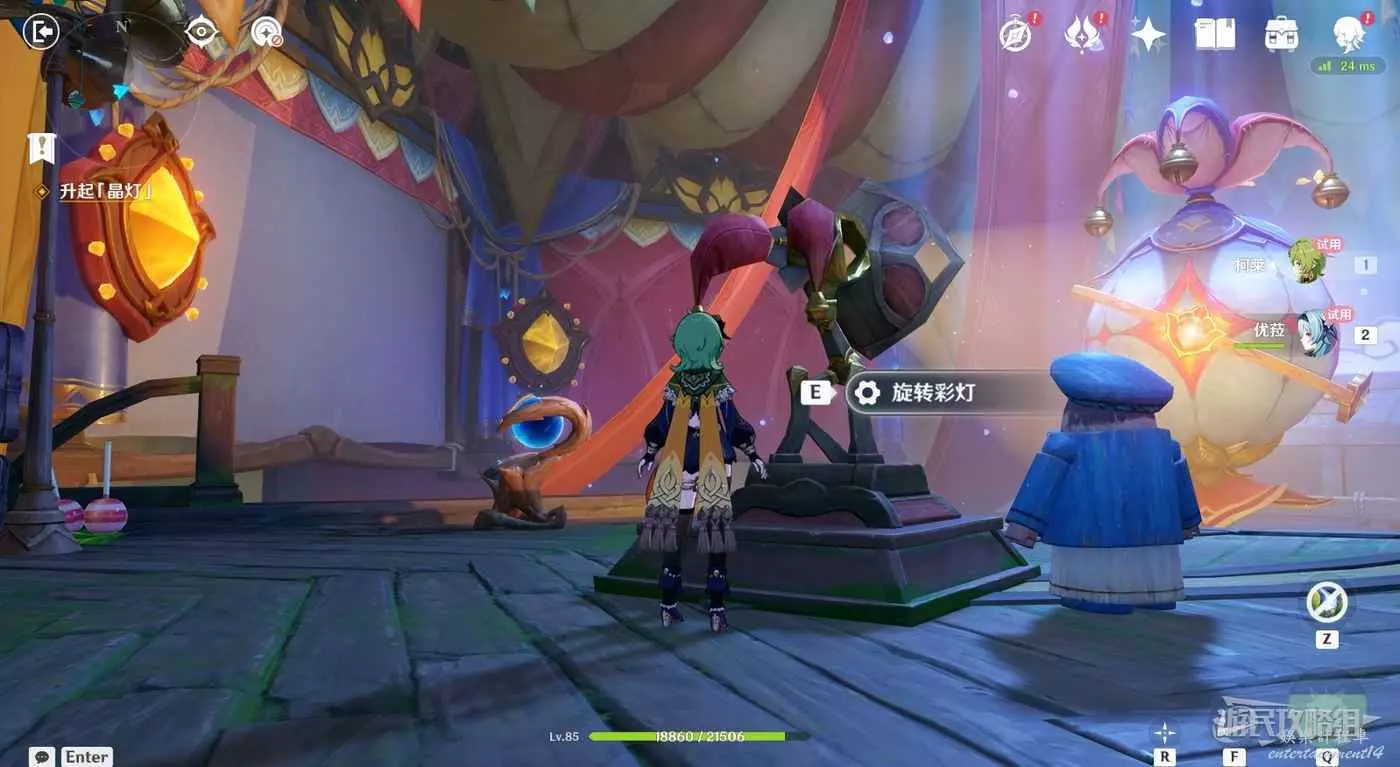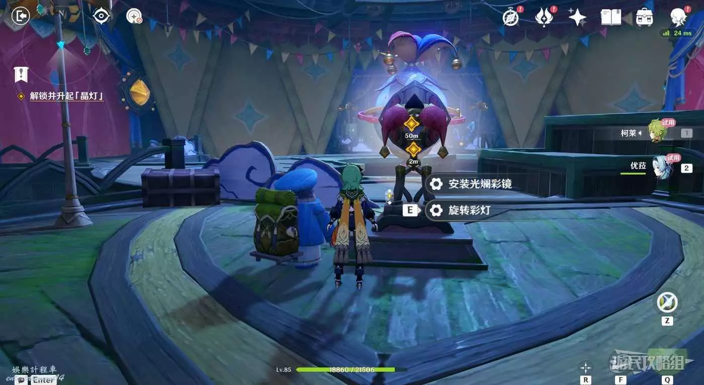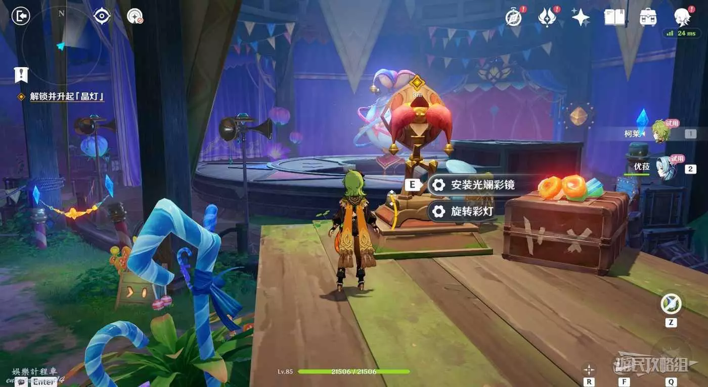 然後前往這盞彩燈的正對面,分別拾取地上的2面光斕彩鏡,為彩燈安裝後選擇旋轉彩燈。
