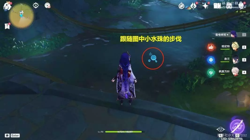 3.隨後我們將視角往下看,我們會看到一個小水珠,隨後我們需要跟隨著如圖的小水珠
