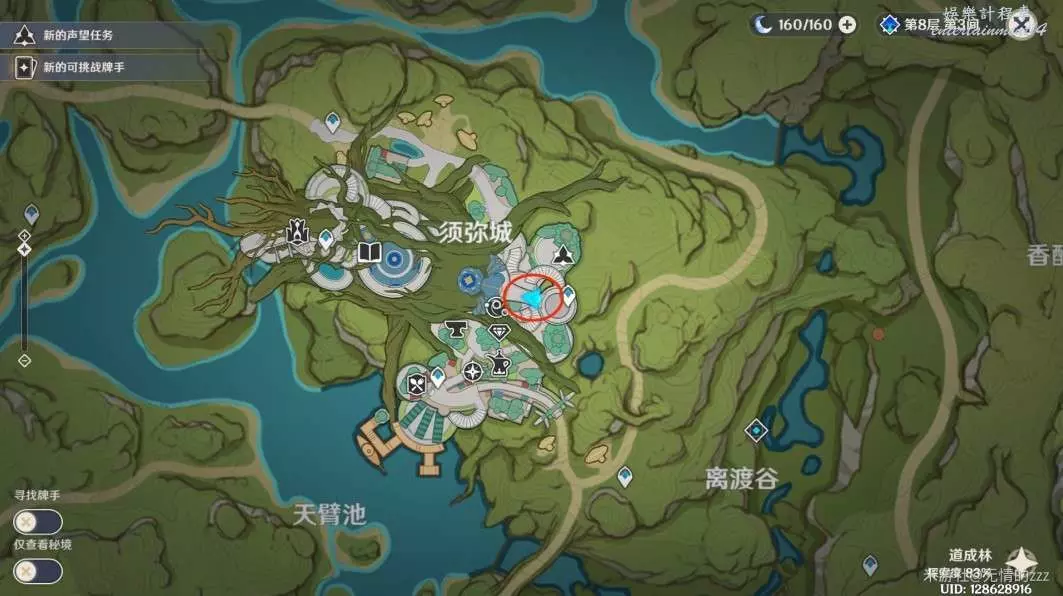 6.從學者賽達菲口中,我們得知我們需要幫其去沙漠拿回他的研究資料,我們可以通過秘境【千柱的花園】快速到達任務地點