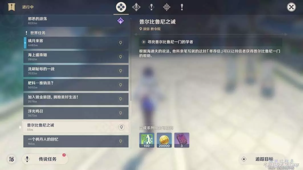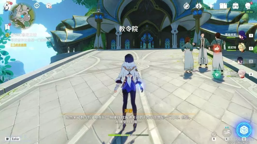 2.隨後我們只需要靠近教令院的大門,我們就會接取到世界任務——普爾比魯尼之誡
