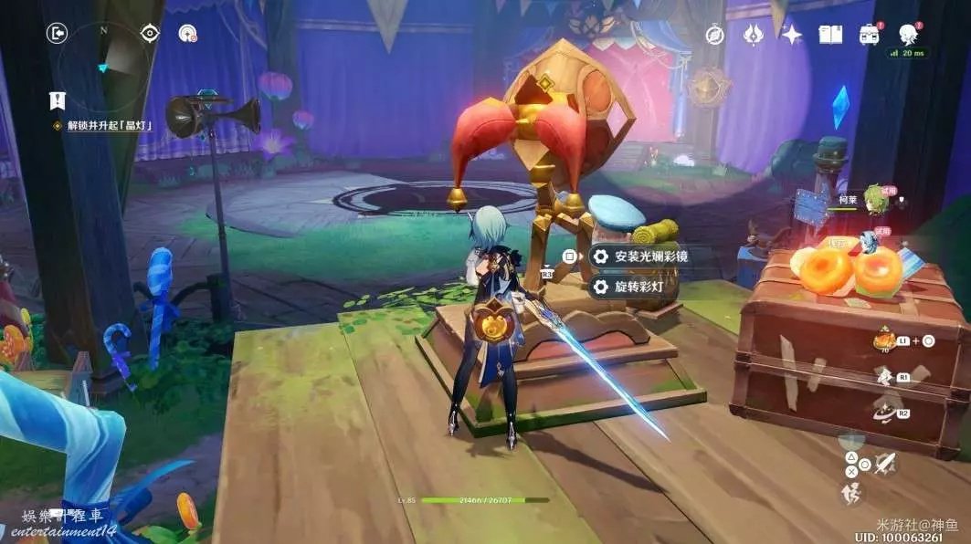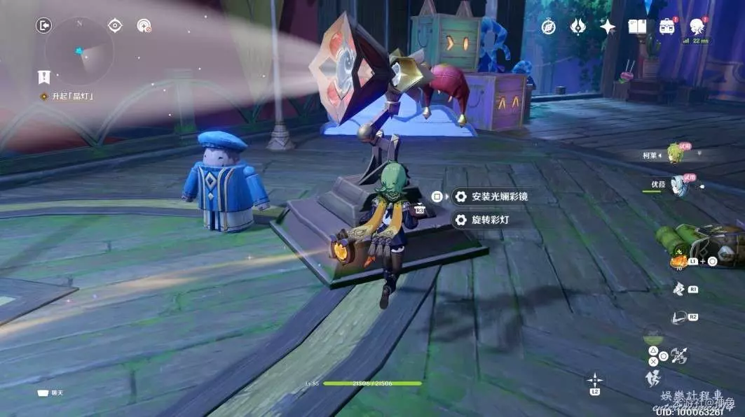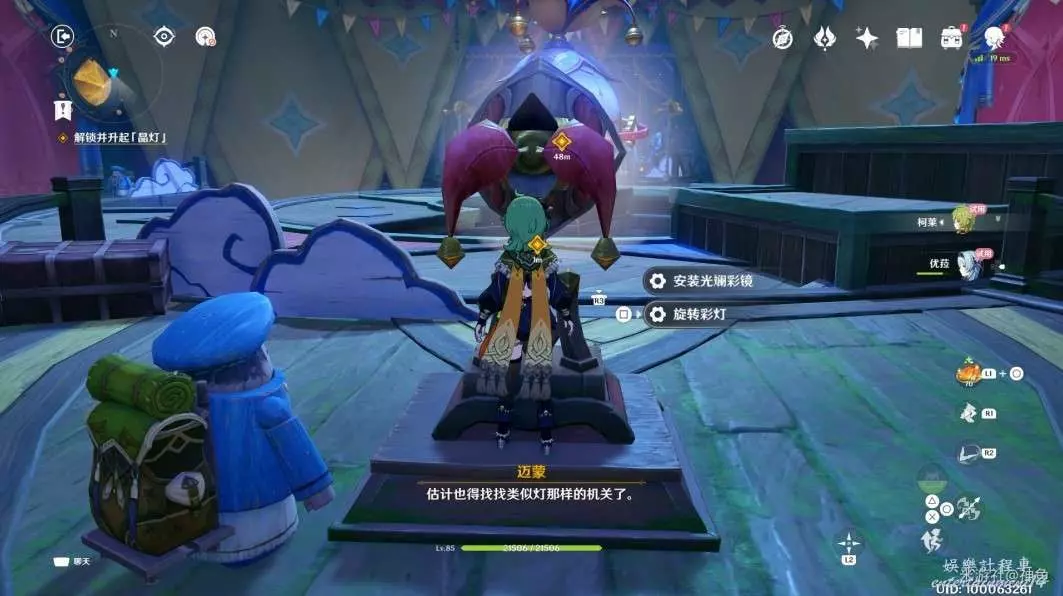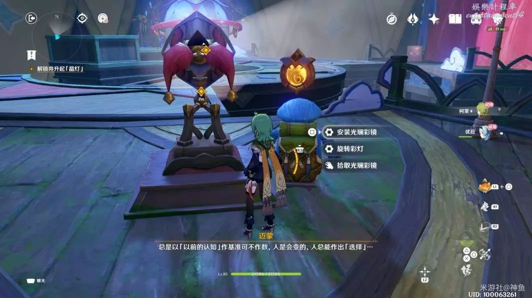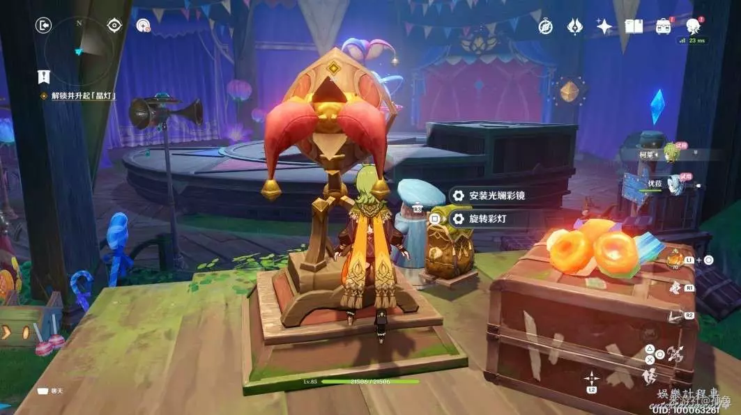 出先成圖,將光斕彩鏡安裝到映入眼簾的彩燈裡面,旋轉彩燈,出秘境。