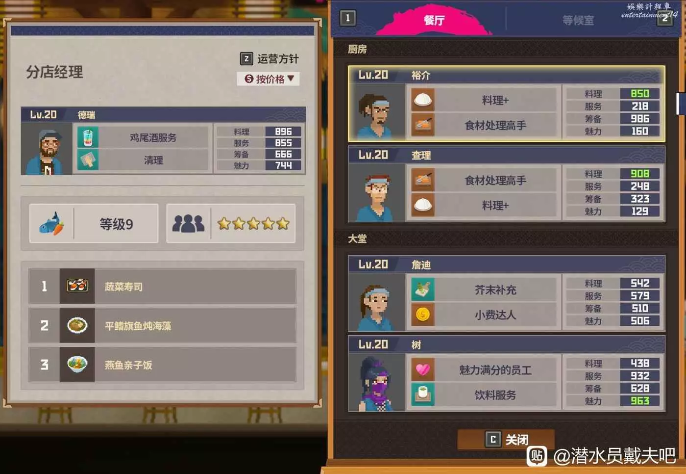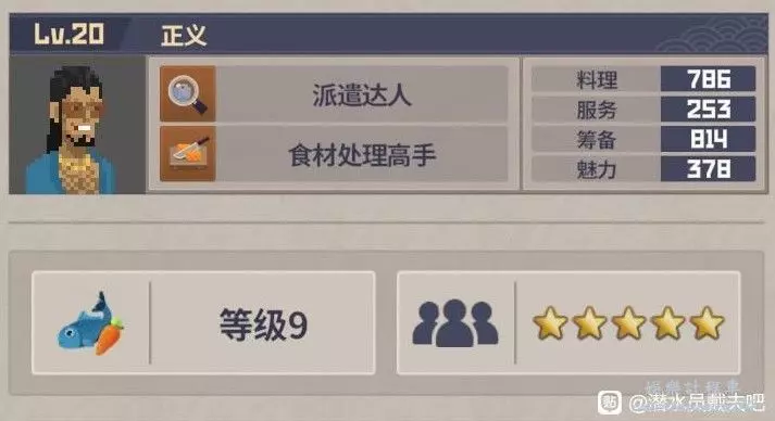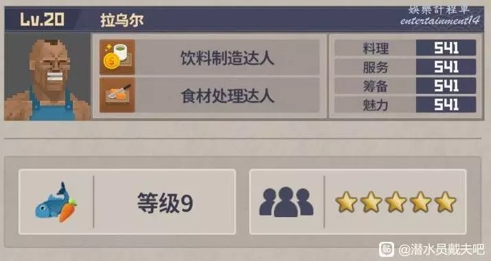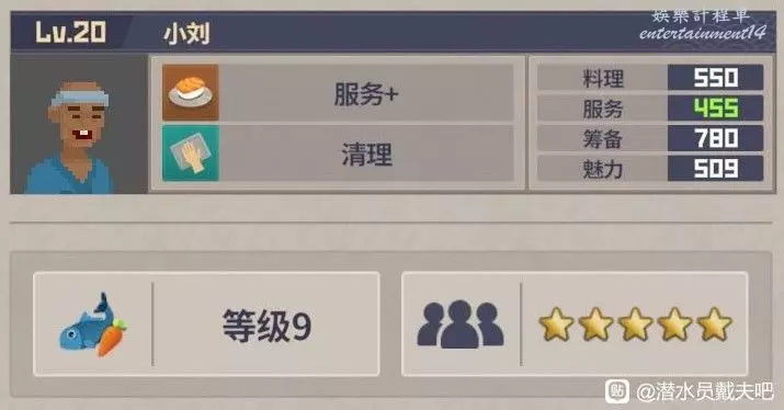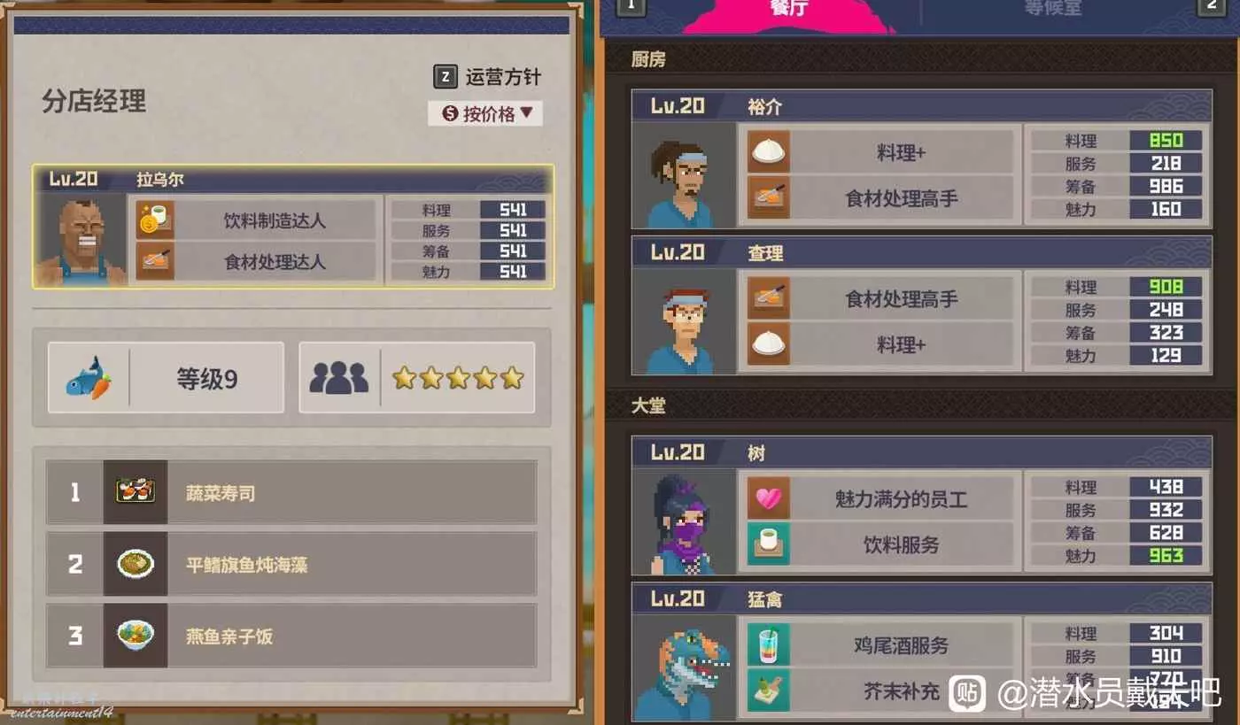20級以後,必定料理等級9,星級五顆星的幾個員工。(可能有漏勿怪)還有倆個派遣員工也能雙滿,感覺拿來做經理有點虧。