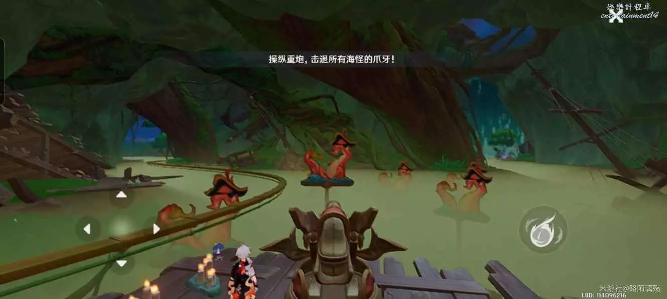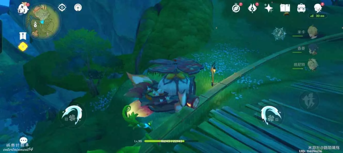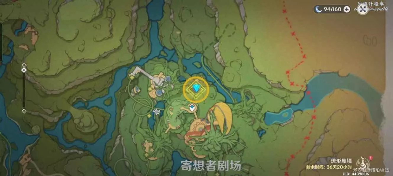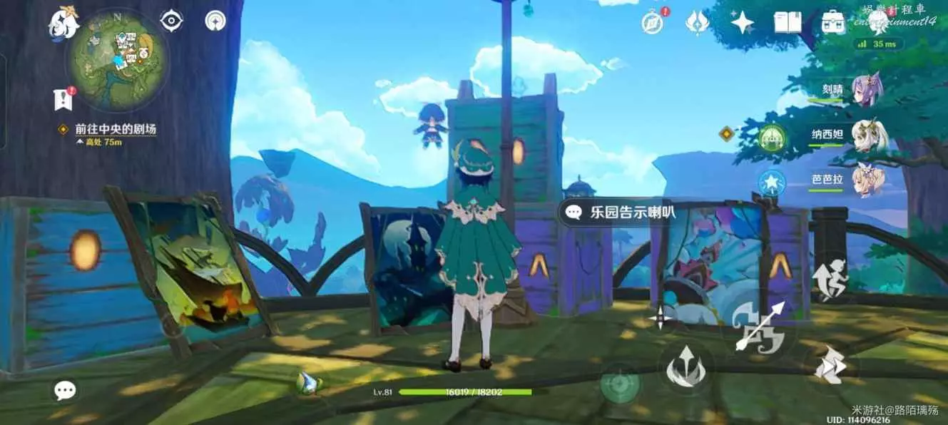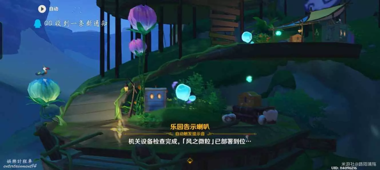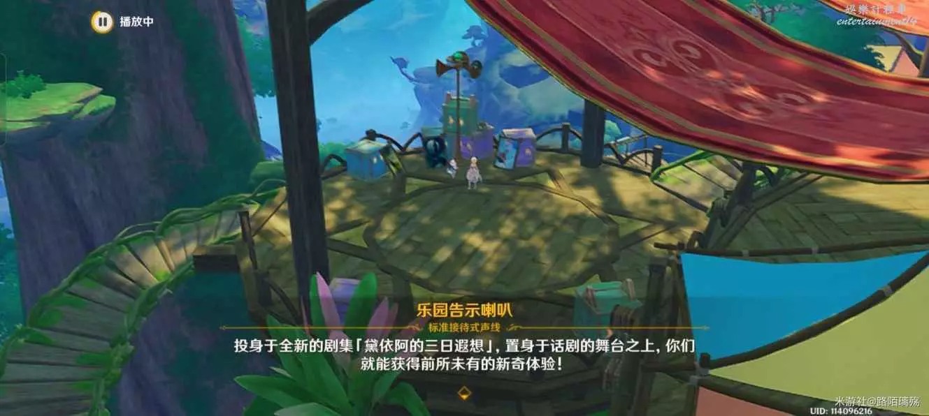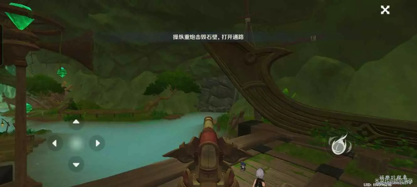 位置:(在前一個任務的摩拉池中,抬頭,借助四葉印,沿著道路出來,洞口處有一個挑戰,完成挑戰就可以到這個喇叭處)